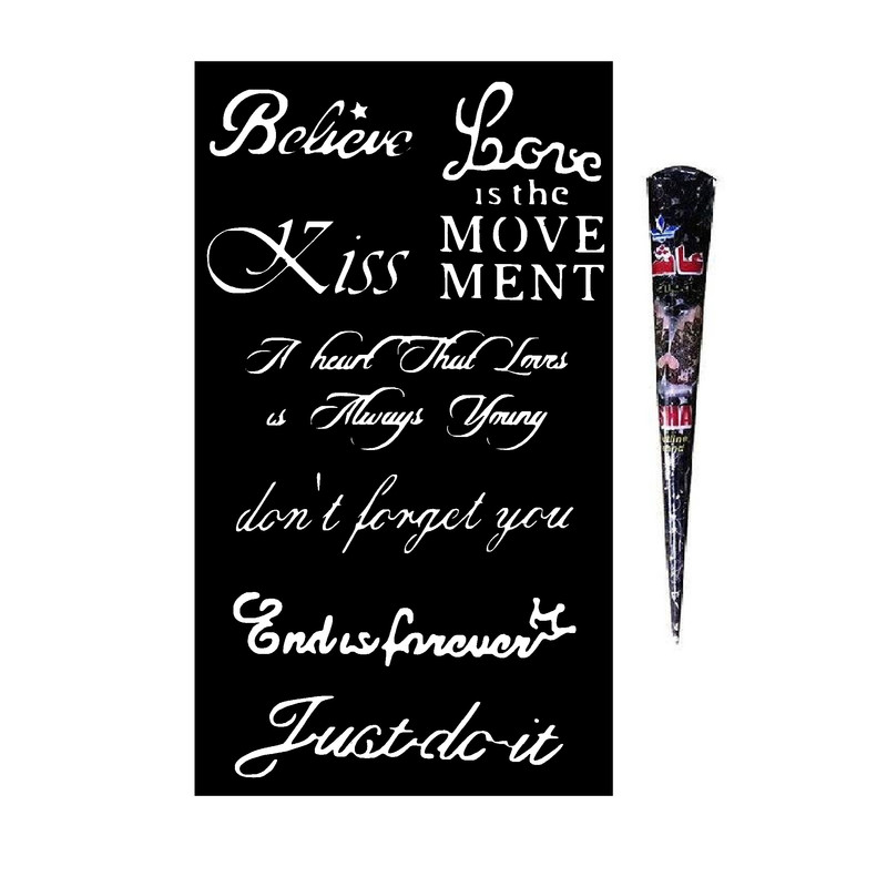 حنا طراحی و شابلون تتو موقت مدل متن انگلیسی M5 مجموعه 8 عددی