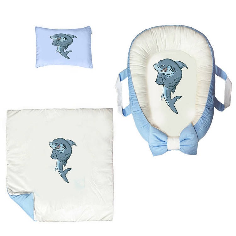 سرویس خواب سه تکه نوزاد ناریکو مدل گارد محافظ دار طرح کوسه کد 049