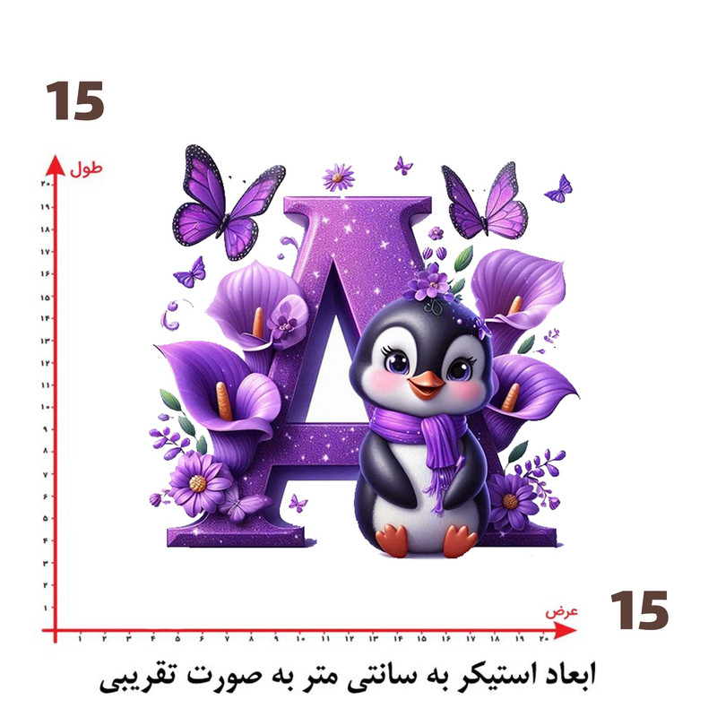 استیکر پارچه و لباس پاد آفرین طرح پنگوئن و حرف A کد 2514