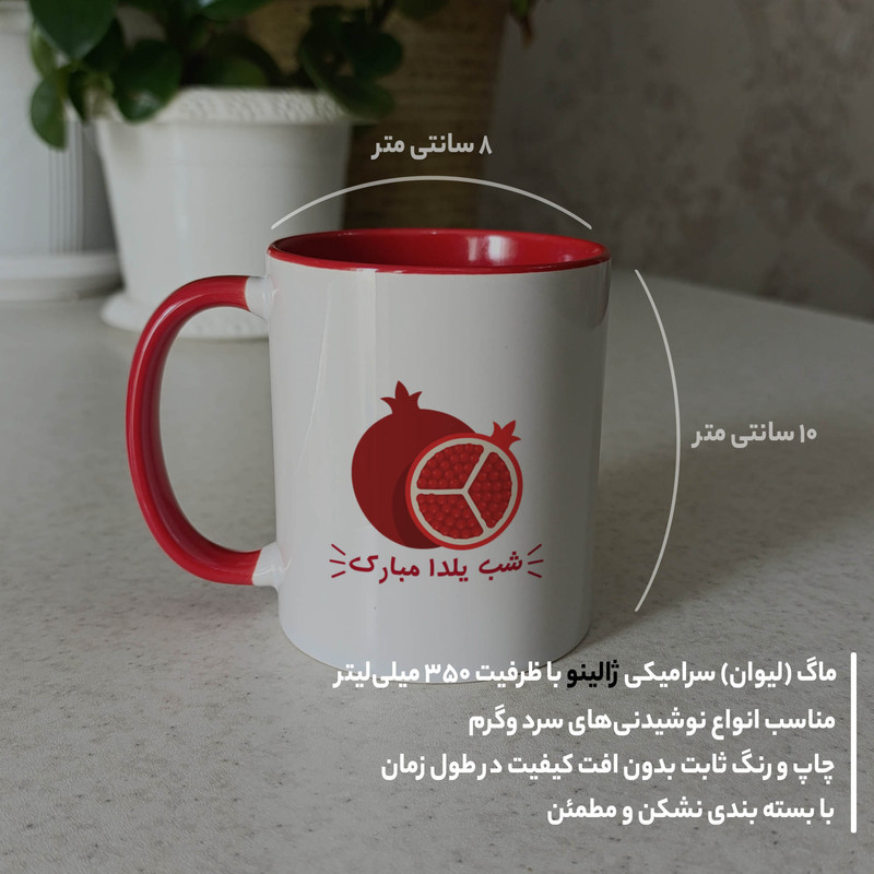 ماگ ژالینو طرح شب یلدا مبارک و انار کد 001