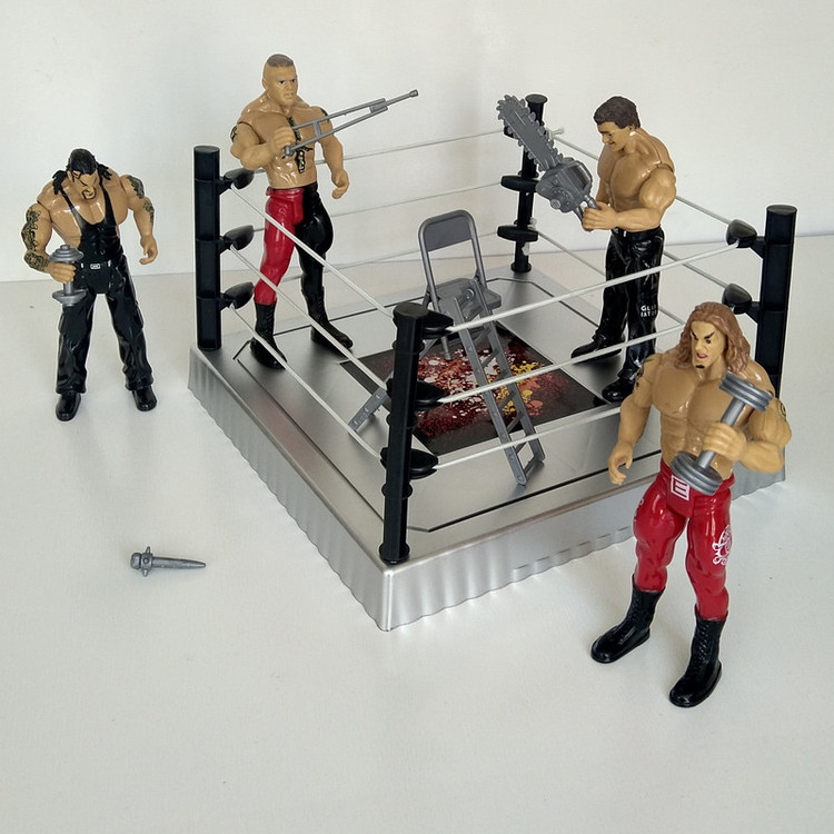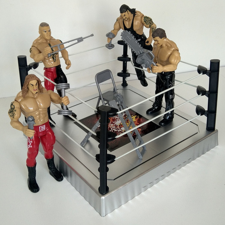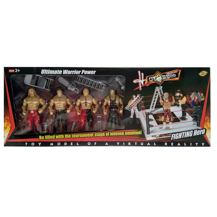 چهارعدد قهرمانان کشتی کج به همراه رینگ ارتفاع هر فیگور 17 سانتیمتر ابعاد رینگ 24 در 24 سانتیمتر