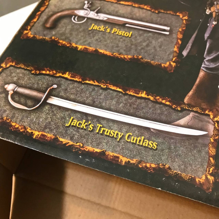 اقلام همراه : اکشن فیگور کاپیتان جک اسپارو ، شمشیر جک اسپارو ، قطب نمای جک اسپارو (با قابلیت باز شدن) ، اسلحه کمری جک اسپارو ، شمشیر جک اسپارو ، کلاه جک اسپارو ، بطری جک اسپارو