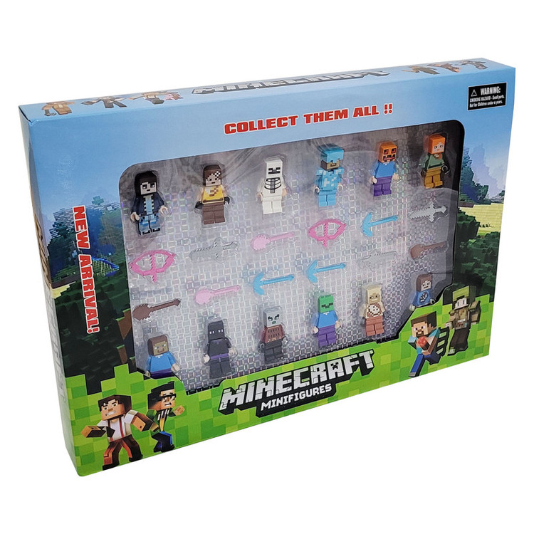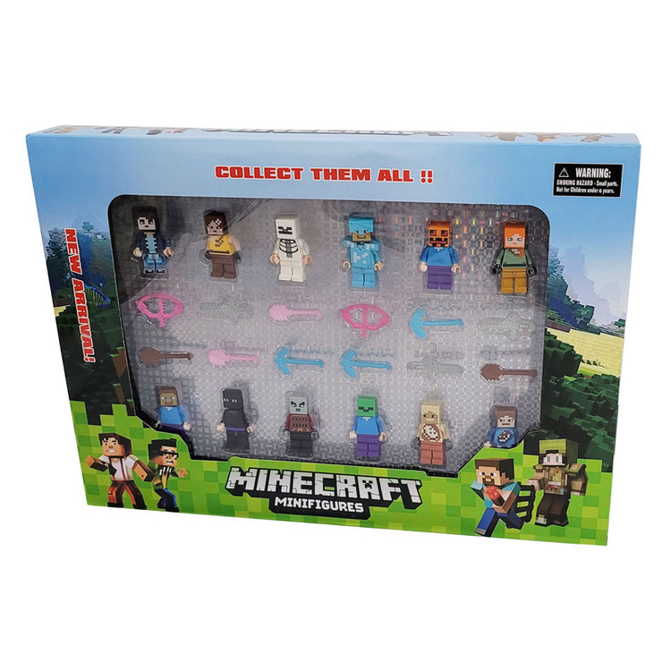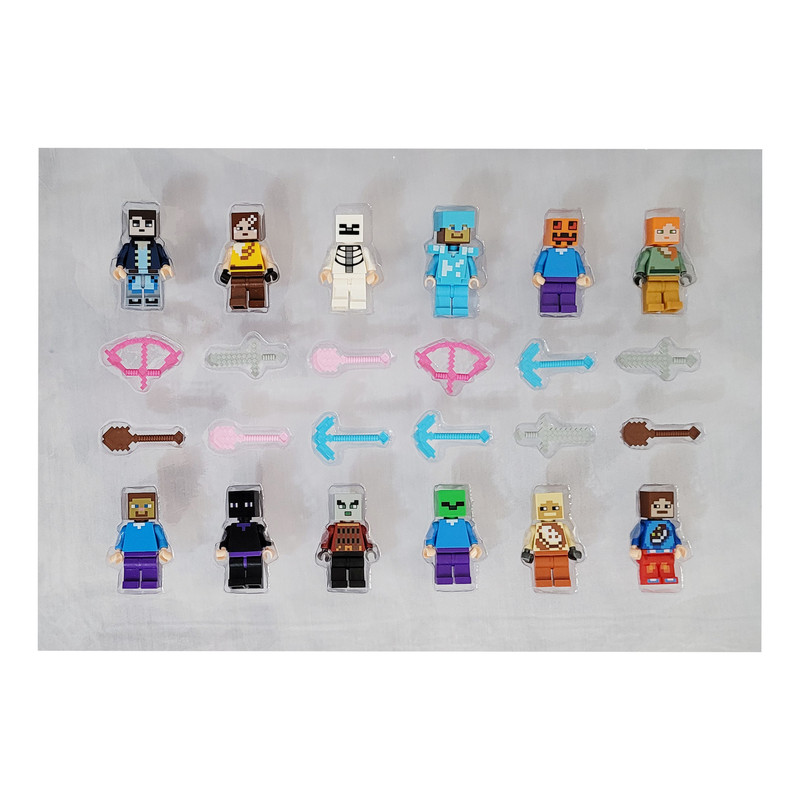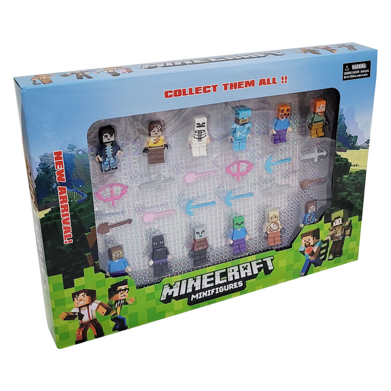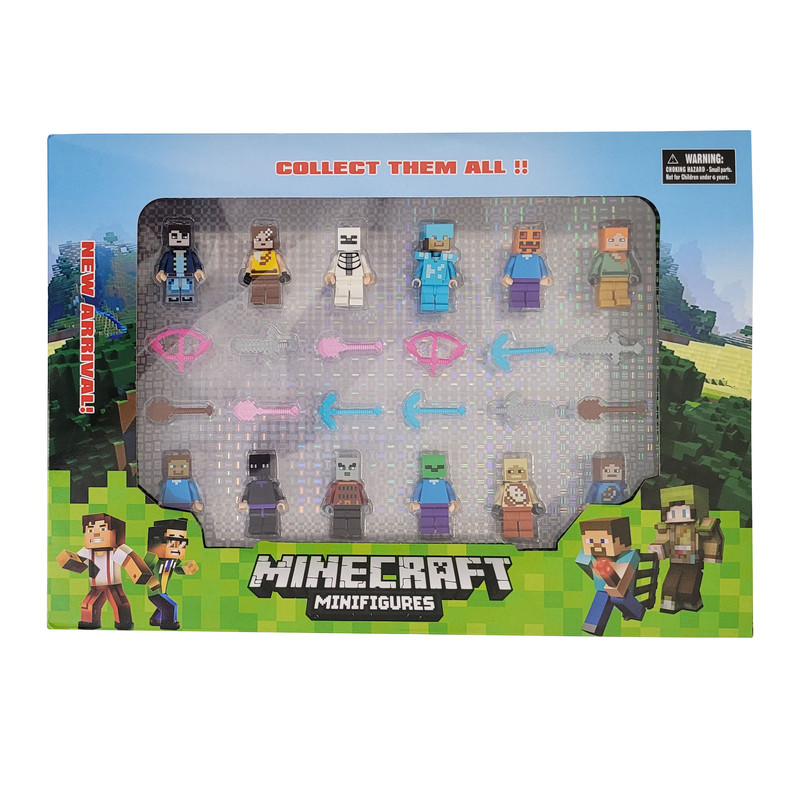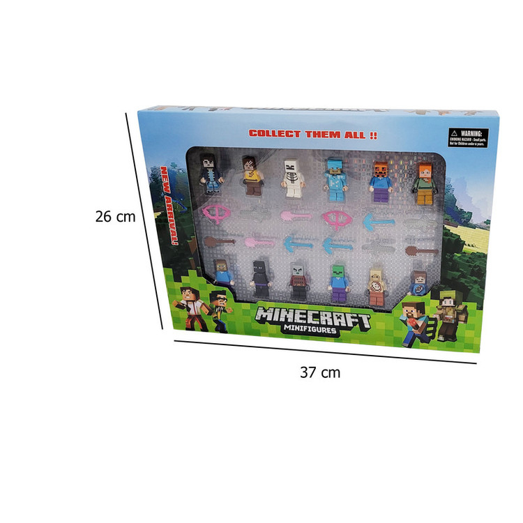 محتویات بسته بندی 12 عدد فیگور ماینکرافت و 12 عدد ابزار جنگی دارای بسته بندی جعبه ای مناسب هدیه ارتفاع فیگور 4 سانتی متر