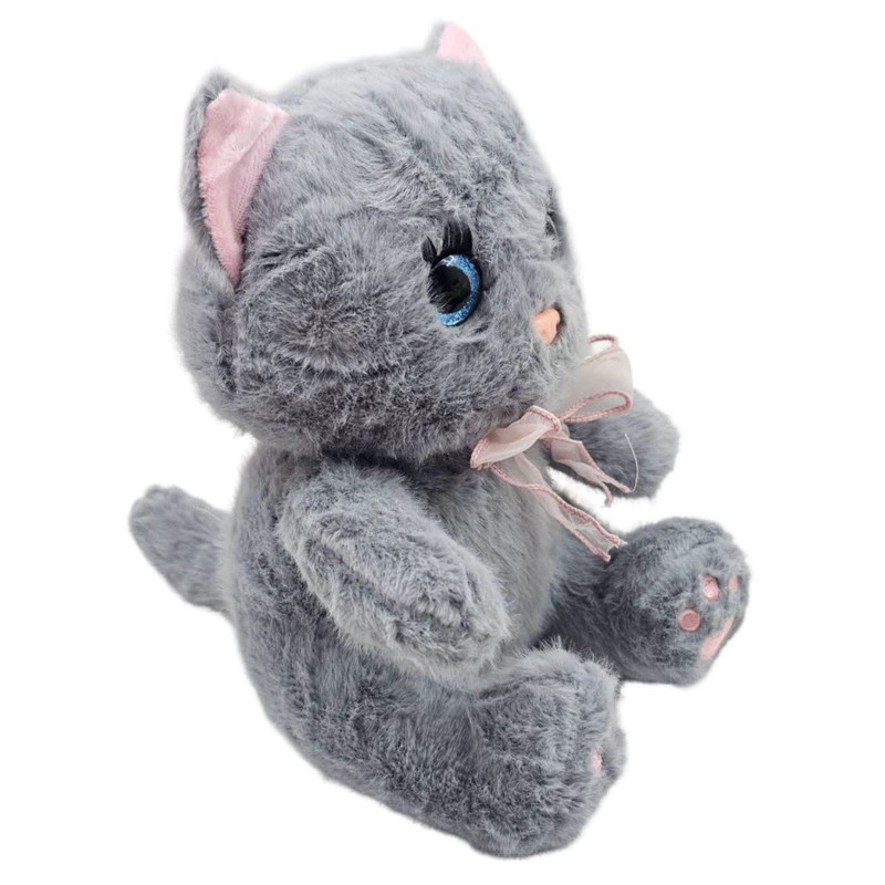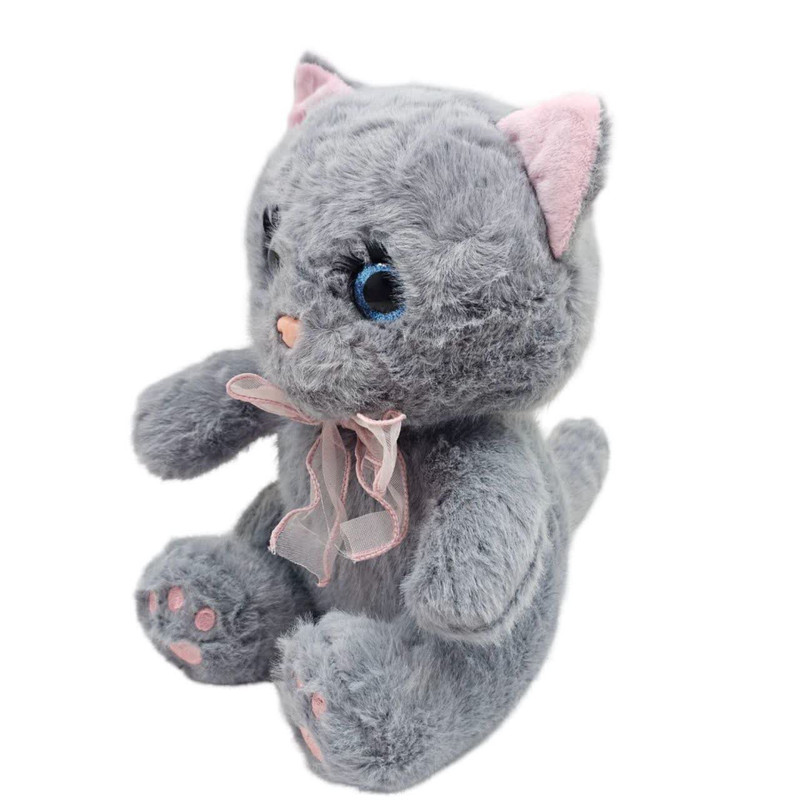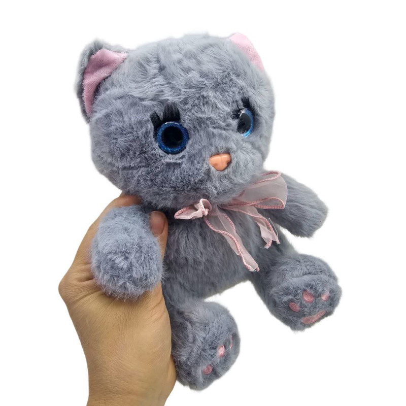عروسک ناب سل مدل پولیشی گربه ملوس چشم تیله ای پاپیون دار ارتفاع 25 سانتی متر یک عروسک نرم وزیبا با جزئیات دقیق و مژه های زیبا میتواند به عنوان یک هدیه مناسب برای علاقه مندان به عروسک پولیشی گربه باشد.