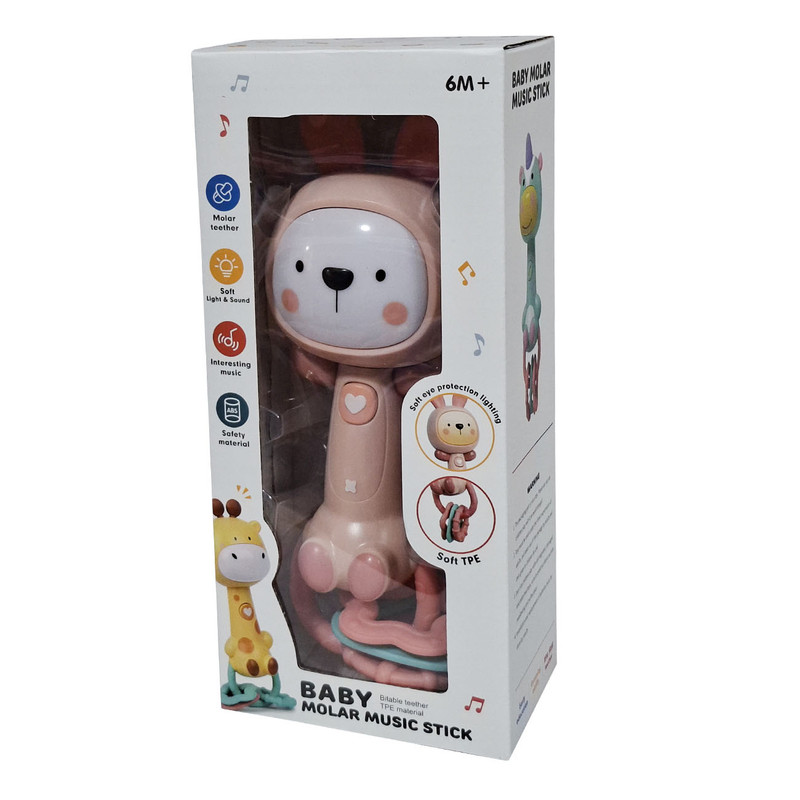 نوع جغجغهموزیکال , چراغ دار , دندانیابعاد7x5x22 سانتیمتروزن100 گرمجنسپلاستیکطراحی شده برایپسران و دخترانرده سنی0 تا 12 ماهگیرنگچند رنگ