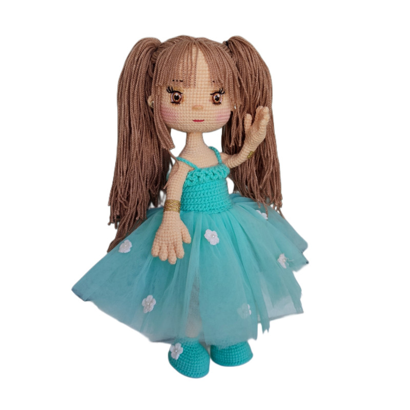این عروسک زیبا از کاموای مرغوب و ضدحساسیت بافته شده و بدن عروسک قابل انعطاف و سر عروسک نیز قابل چرخش است. قد عروسک 34 سانتی متر است.