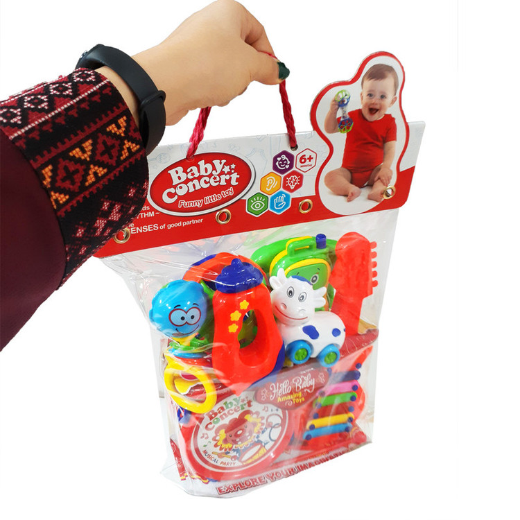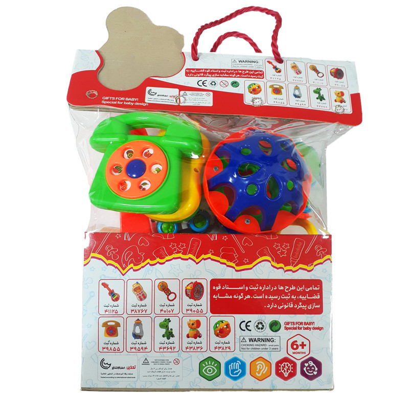 • جنس پلاستیکی • دارای رنگ جذاب برای نوزادان • دارای 9 جغجغه متنوع در سایز های مختلف • این جغجغه به گونه ای طراحی شده است که نوزاد به راحتی میتواند آن را در دست بگیرد.