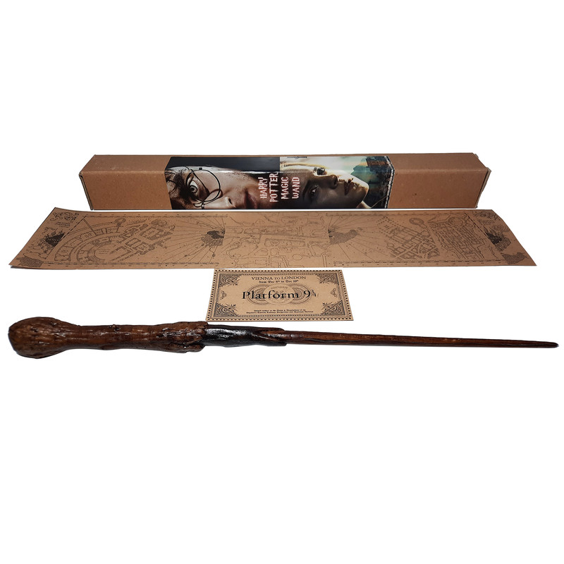 چوبدستی جادویی هری پاتر، ابزار ایفای نقش هری پاتر و مابقی بازیگران این فیلم زیباست.تمامی طرفداران هری پاتر با چوب جادویی هری پاتر آشنایی دارند.این چوب دستی از جنس پلاستیک تقویت شده می باشد تا براحتی شکسته نشود،ولی برای استفاده آن باید مواظب ضربه نخوردن آن باشید، به همراه چوب هری پاتر جعبه ی کارتنی، کارت قطار، و نقشه ی مینیاتوری غارتگر هری پاتر به صورت هدیه برای شما ارسال می شود. کارت قطار لندن به هاگواترز برای دوستداران هری پاتر کلیدی است که ورود به دنیای جادویی و اسرار آمیز ...است