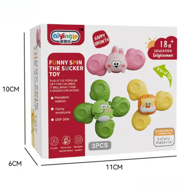 اسپینر چسبونکی سهعددی مدل حیوانات، یک وسیلهی سرگرمکننده و کاربردی برای کودکان بالای ۱۸ ماه است که امکان استفاده در حمام و همچنین روی شیشهی خودرو هنگام نشستن کودک روی صندلی ماشین را فراهم میکند. این اسپینرها با چسبونکهای تعبیهشده در پشت محصول بهراحتی روی سطوح صاف ثابت میمانند و وجود جغجغه در پرههای آنها، جذابیت و سرگرمی بیشتری ایجاد میکند. محصول از پلاستیک باکیفیت و فاقد مواد مضر ساخته شده و شامل سه نوع اسپینر دوپره، سهپره و چهارپره است. قطر هر اسپینر حدود ۹ تا ۱۰ سانتیمتر بوده و بستهبندی آن با ابعاد ۱۱×۶×۱۰ سانتیمتر ارائه میشود. این مجموعه ساخت کشور چین است و گزینهای مناسب برای مشغولکردن کودک در زمان حمام یا سفر محسوب میشود.
