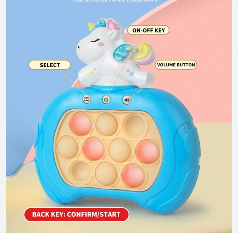پاپیت گیم یونیکورن یک بازی مهیج سرعتی حرکتی است که علاوه بر سرگرمی برای درمان استرس و اضطراب بسیار کاربردی است . اگر از آن دسته از افرادی هستید که زیاد با موبایل کار یا بازی می کنید ، این بازی می تواند جایگزین بسیار مناسبی برای موبایل باشد .همچنین اگر در طول روز تحت تاثیر فشار و استرس های ناشی از کار قرار گرفتید ، می توانید تنها با این پاپیت گیم حال و هوای خود را عوض کنید .این بازی جزء دسته ی بازی های هوشی حرکتی قرار می گیرد که محدودیت سنی ندارد و از کودکان بالای 3 سال تا بزرگسالان نیز می توانند از آن استفاده کنند .این پاپیت گیم دارای 3 دکمه است که یکی برای روشن/خاموش ، یکی برای کنترل صدا و دیگری برای انتخاب حالت های مختلف بازی می باشد .متریال این محصول از پلاستیک با کیفیت بالا ساخته شده که در طولانی مدت خراب نمی شود .
