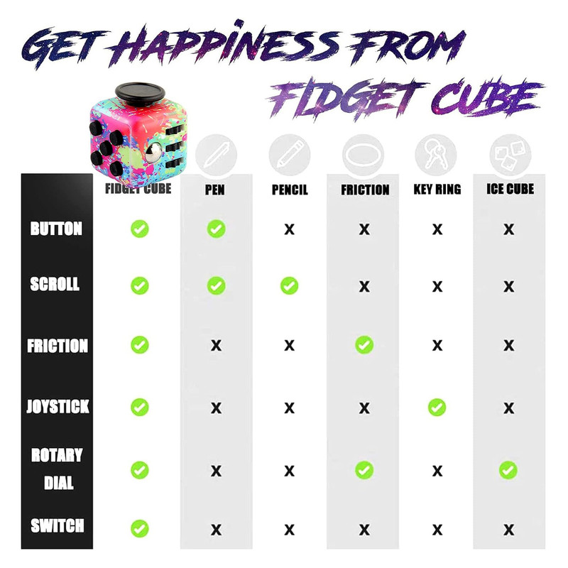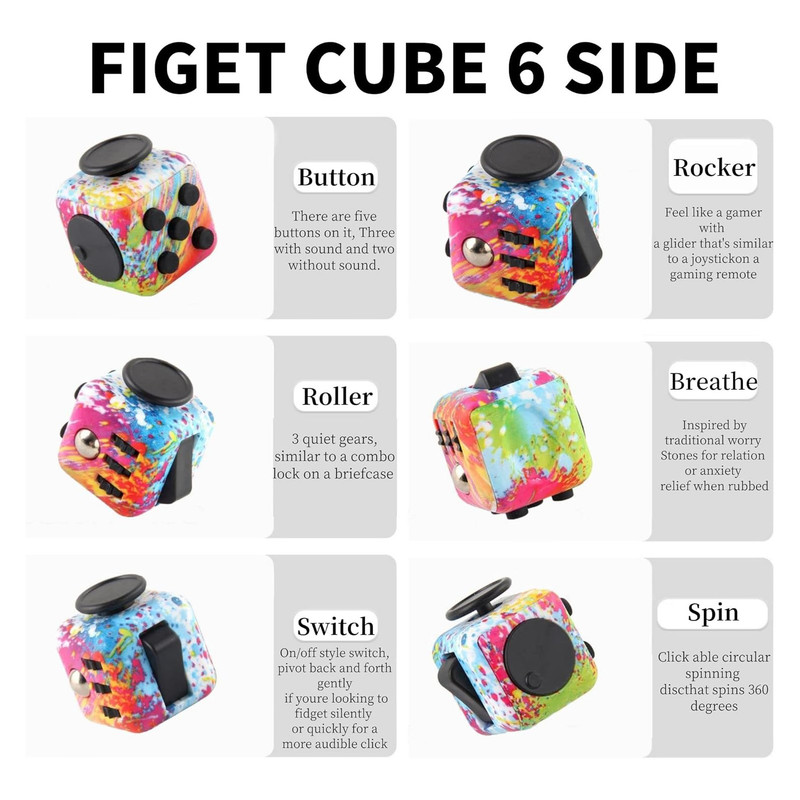 این مکعب ها که برای سنین 3 سال به بالا مناسب می شود، می توانند توسط بزرگسالان و نوجوانان به طور یکسان برای مدیریت سطح استرس در محل کار، مدرسه یا خانه استفاده شوند.