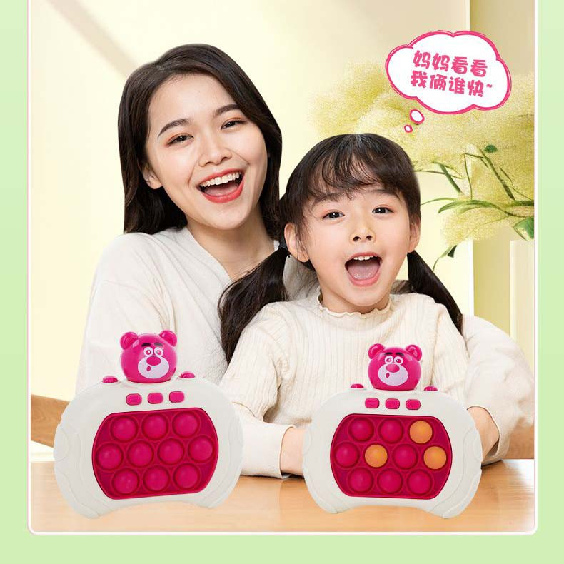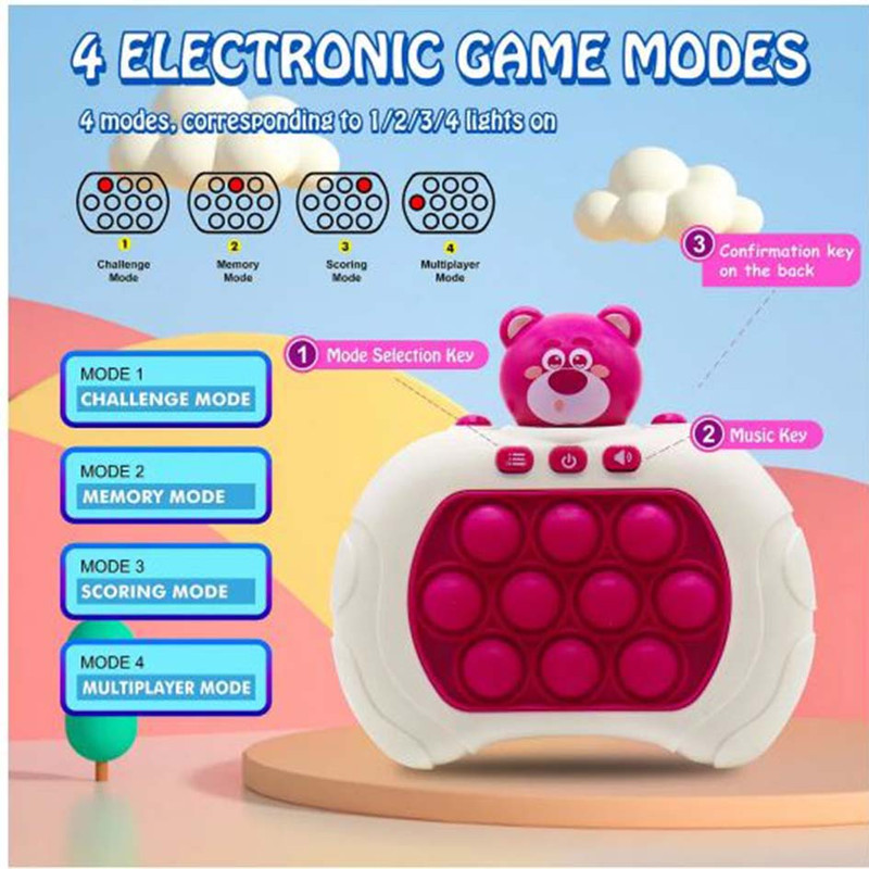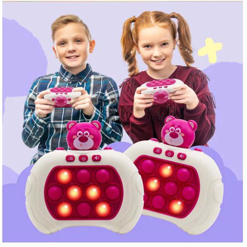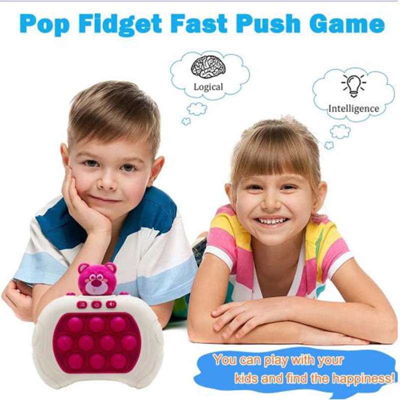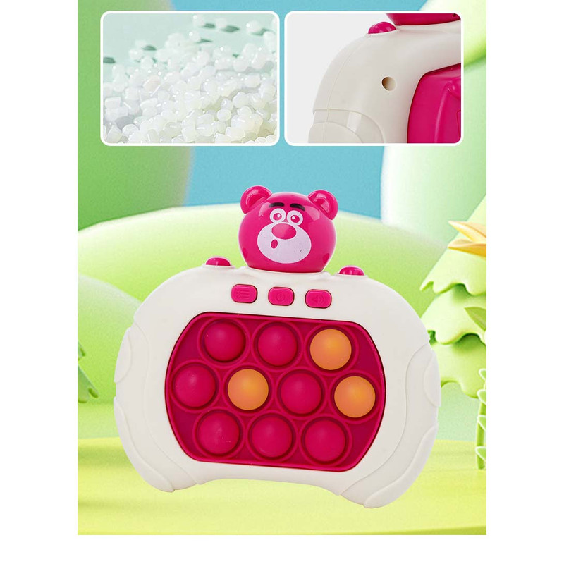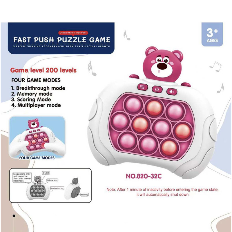 کنسول بازی QUICK PUSH پاپت گیم مدل Quick Push یک بازی مهیج سرعتی حرکتی است که برای سرگرمی، بالابردن سرعت عمل و هماهنگی ذهن و عضله بسیار مفید است و باعث رشد و بهبود قابلیت های کودکان میگردد. این کنسول بازی همچنین برای درمان استرس و اضطراب بسیار کاربردی است . اگر از آن دسته از افرادی هستید که زیاد با موبایل کار یا بازی می کنید ، این بازی می تواند جایگزین بسیار مناسبی برای موبایل باشد . همچنین اگر در طول روز تحت تاثیر فشار و استرس های ناشی از کار قرار گرفتید ، می توانید تنها با این کنسول حال و هوای خود را عوض کنید . این بازی جزء دسته ی بازی های هوشی حرکتی قرار می گیرد که محدودیت سنی ندارد و از کودکان بالای 3 سال تا بزرگسالان نیز می توانند از آن استفاده کنند . مزیت های کنسول بازی Quick Push : سرعتی که برای فشار دادن دکمه ها استفاده می کنید باعث هماهنگی بین چشم و دست و همینطور تقویت دست ورزی می شود . این قابلیت برای کودکان دبستانی ، مخصوصا کلاس اولی ها بسیار ضروری است و تقویت انگشت ها باعث دست گرفتن بهتر مداد و عملکرد بهتر در درست کردن کاردستی و … نیز می شود . هنگامی که پوینت های قرمز را می بینید و آن ها را به خاطر می سپارید ، باعث تقویت حافظه و همچنین با به چالش کشیدن شما باعث افزایش توانایی حل مسئله می شود .