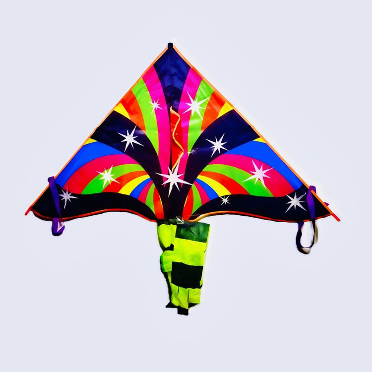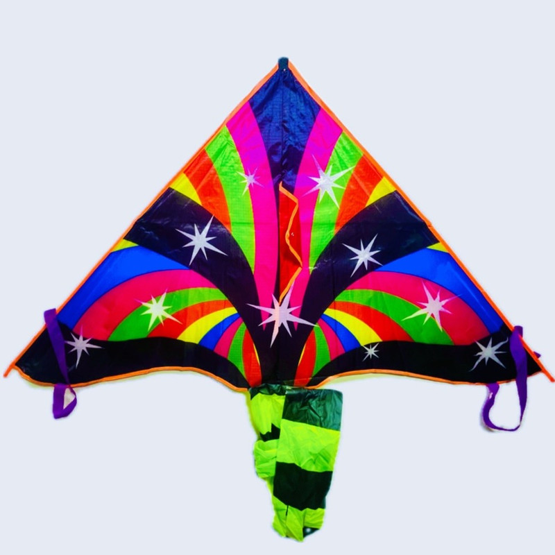 بادبادک مدل دلتا طرح ستاره ای با دنباله دو متری جنس بسیار خوب و دسته نخ ۵٠متری و خوش پرواز به همراه یکعدد هرزگرد که به راحتی نخ را به هر کایتی ول کنید