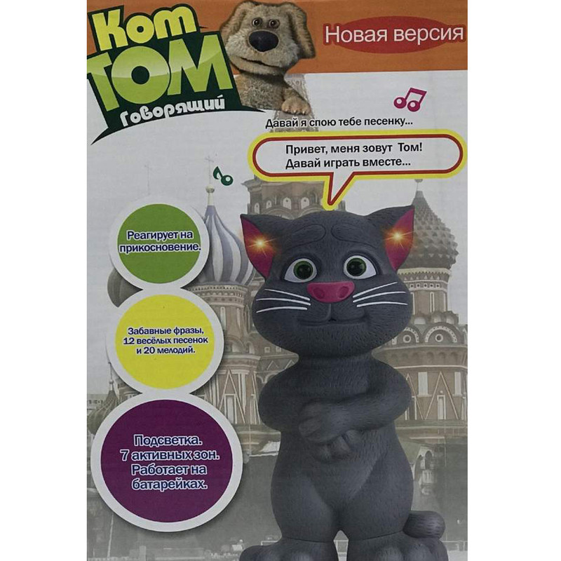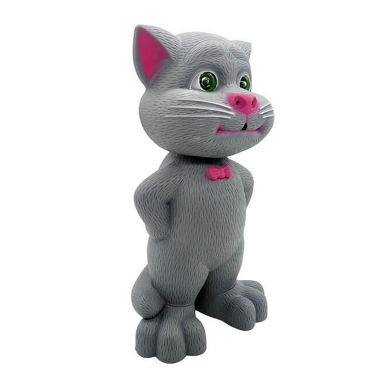 عروسک تام سخنگو یک گربه قصه گو و آواز خوان است که با لمس بخشهای مختلف بدنش با شما صحبت میکند علاوه بر این تام سخنگویی هم میکند به این صورت که حرف های شما را تکرار میکند. قسمت جذاب این اسباب بازی برای بچه ها این است که قسمت هایی از بدن تام به لمس کردن حساس است و با لمس این نقاط تام عکس العمل نشون میدهد مثلا با لمس شکمش تام میخندد.