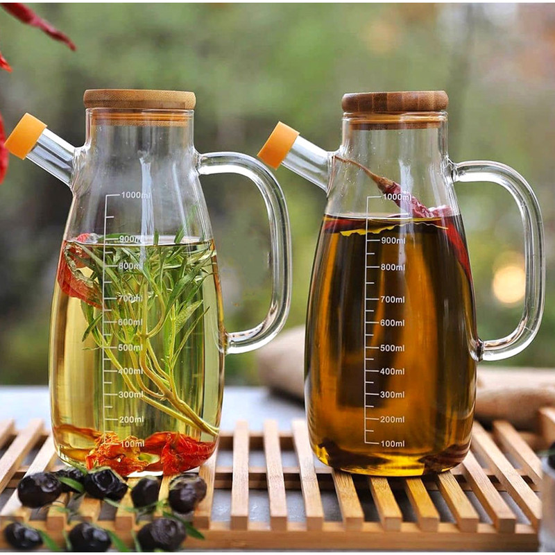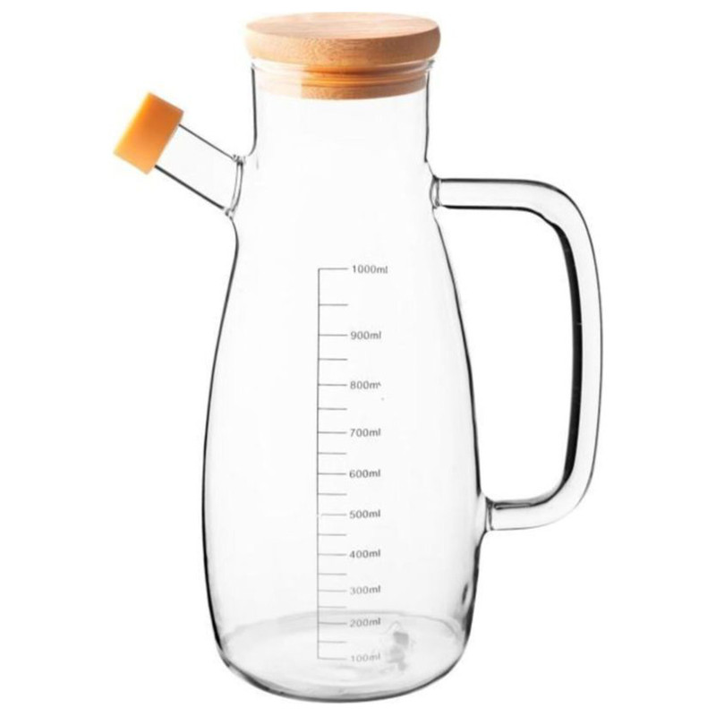 دارای جعبه ساخت چین گنجایش 1000 میلی لیتر دارای درپوش نارنجی رنگ در قسمت روغن ریز درب بامبو دارای دسته درب کاملا کیپ میشود