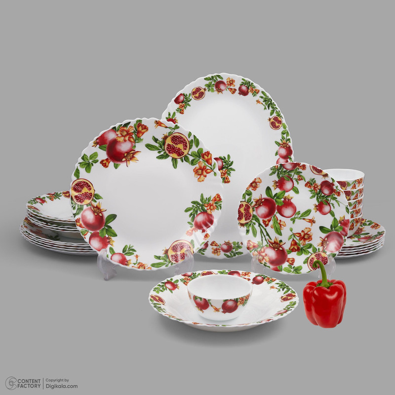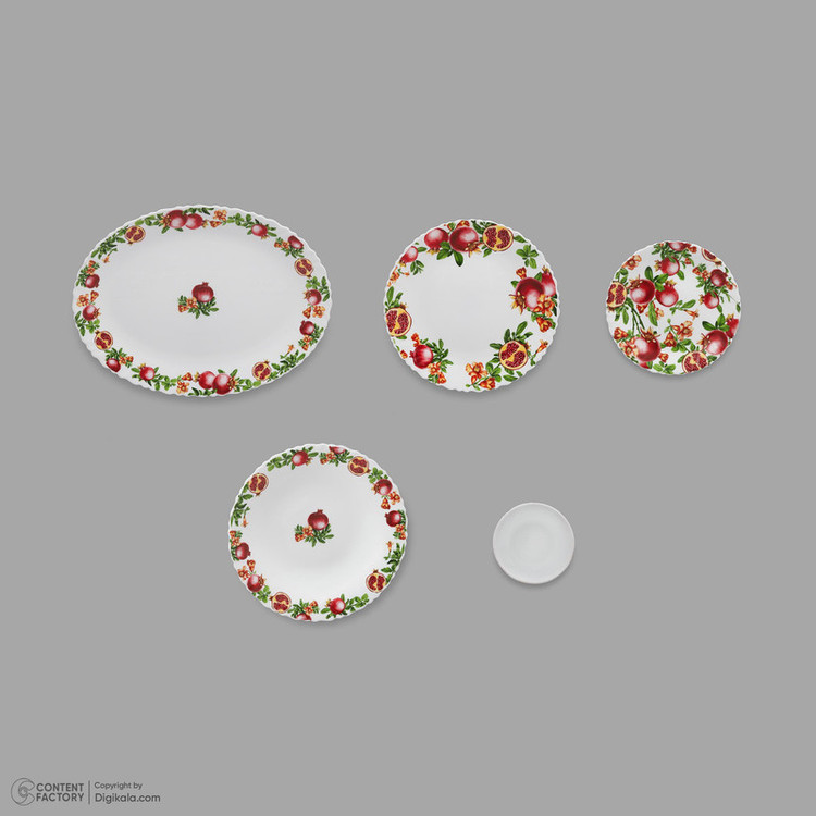 اقلام سرویس: دیس , بشقاب غذاخوری , بشقاب خورشخوری , پیشدستی , پیاله