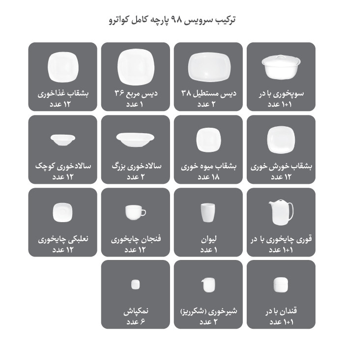 تعداد کلی ظروف: 98 پارچه