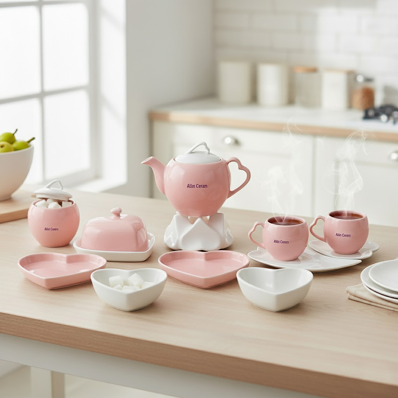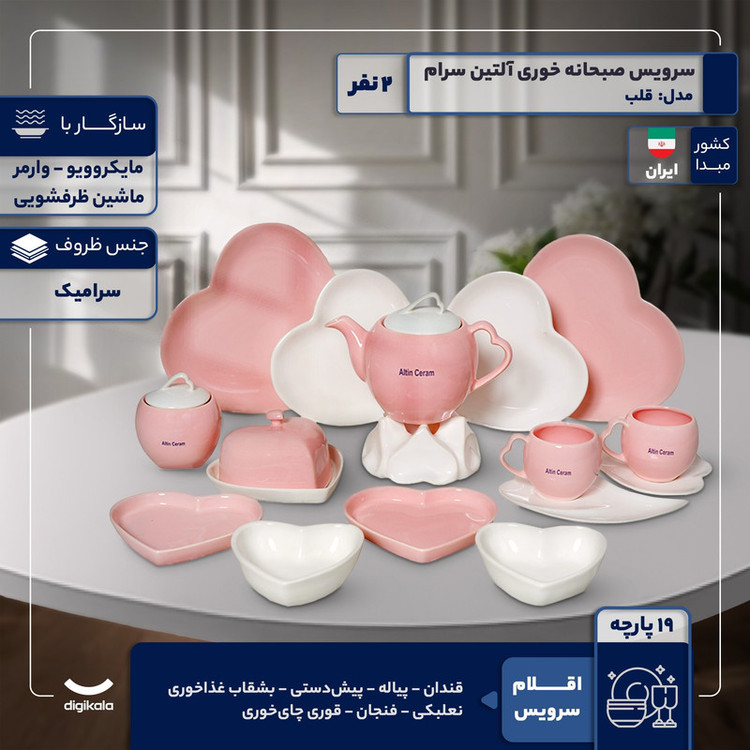 سرویس صبحانه‌خوری 19 پارچه 2 نفر مدل آلتین سرام طرح قلب