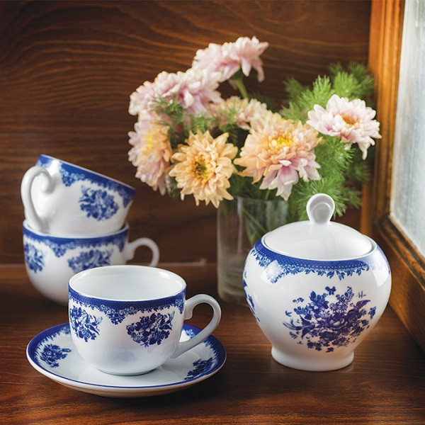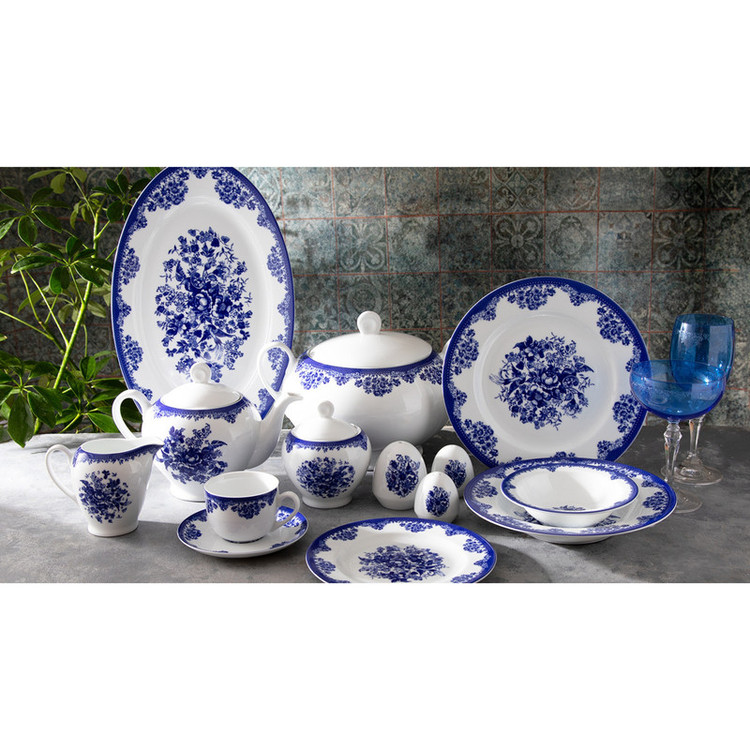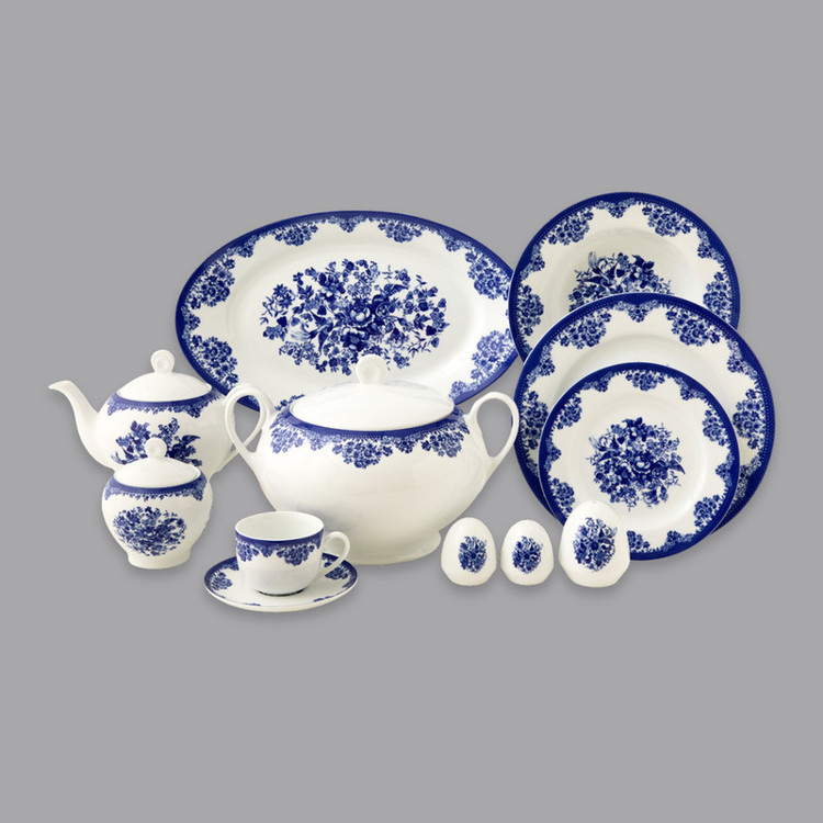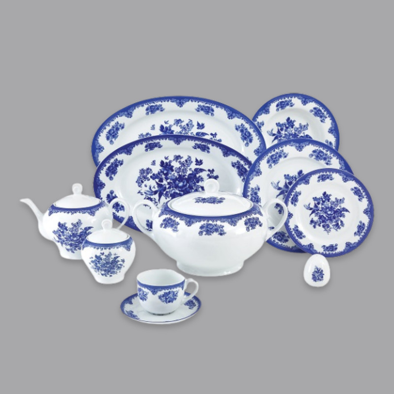 اقلام سرویس: سوپخوری , ظرف سالاد , سالادخوری , دیس , بشقاب غذاخوری , بشقاب خورشخوری , پیشدستی , قوری چایخوری , فنجان , نعلبکی , قندان , شکرریز , نمکپاش و فلفلپاش , ادویهپاش