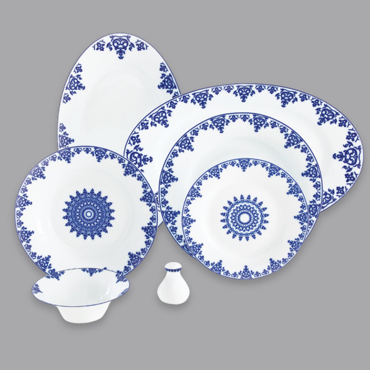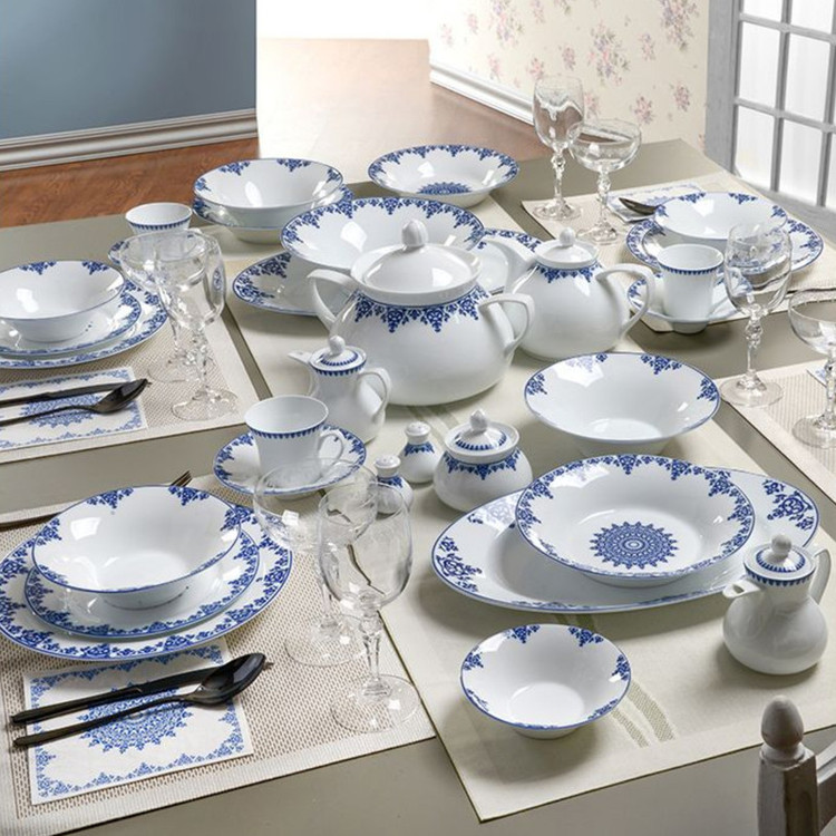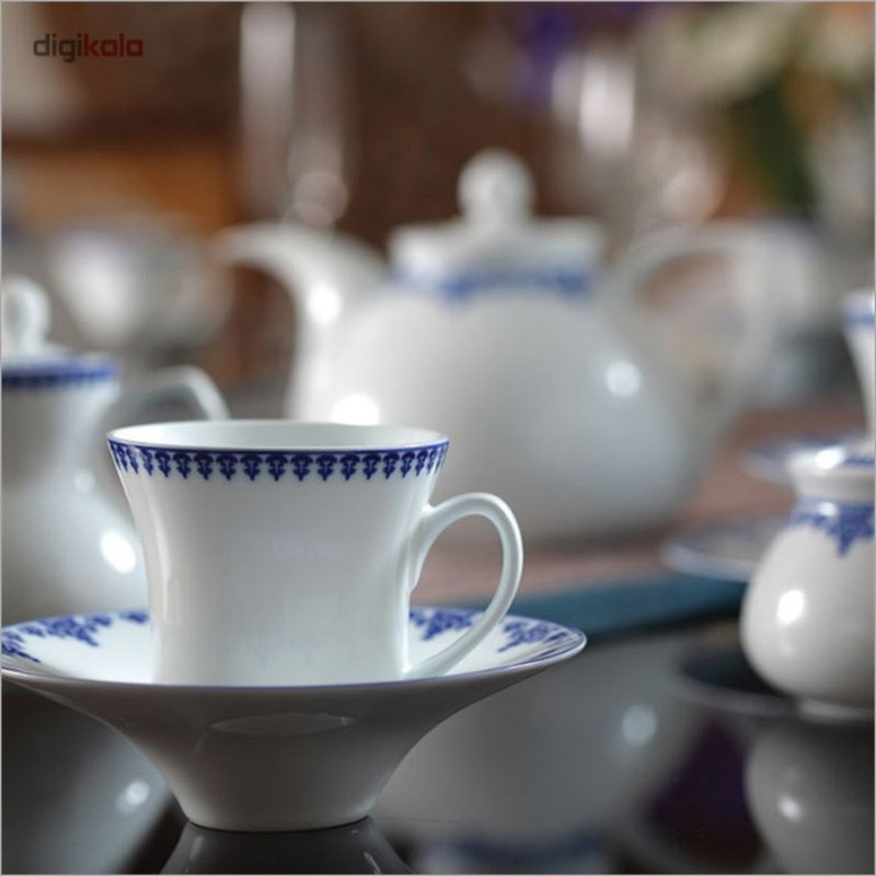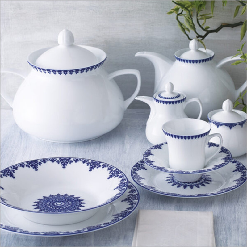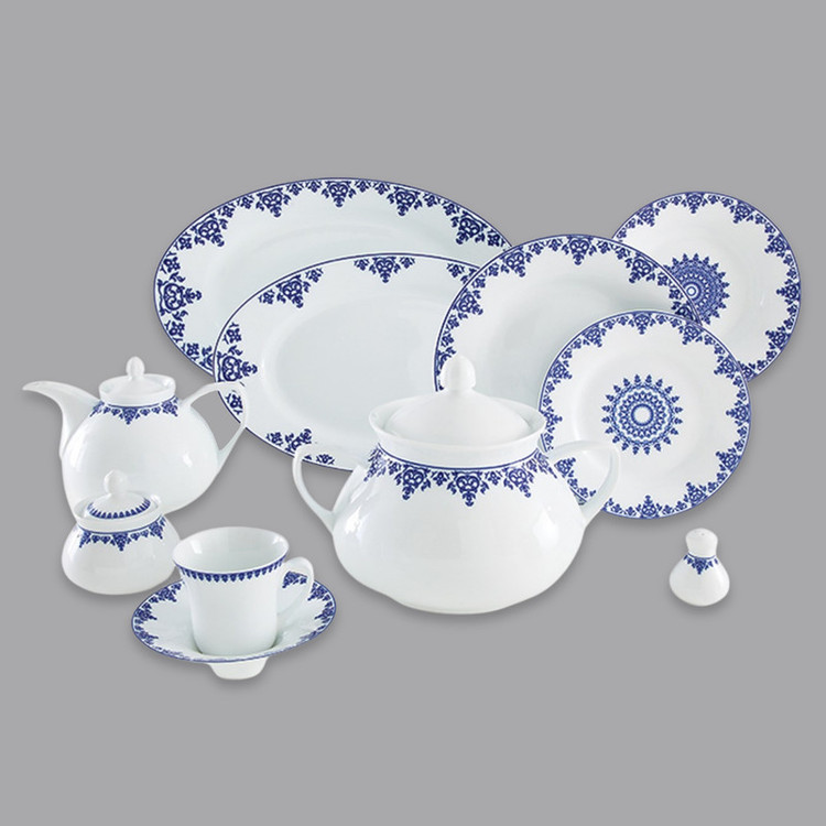 اقلام سرویس: سوپخوری , دیس , بشقاب غذاخوری , بشقاب خورشخوری , پیشدستی , قوری چایخوری , فنجان , نعلبکی , قندان , شکرریز , نمکپاش و فلفلپاش , پیاله , سالادخوری , ظرف سالاد , ادویهپاش , کاسه