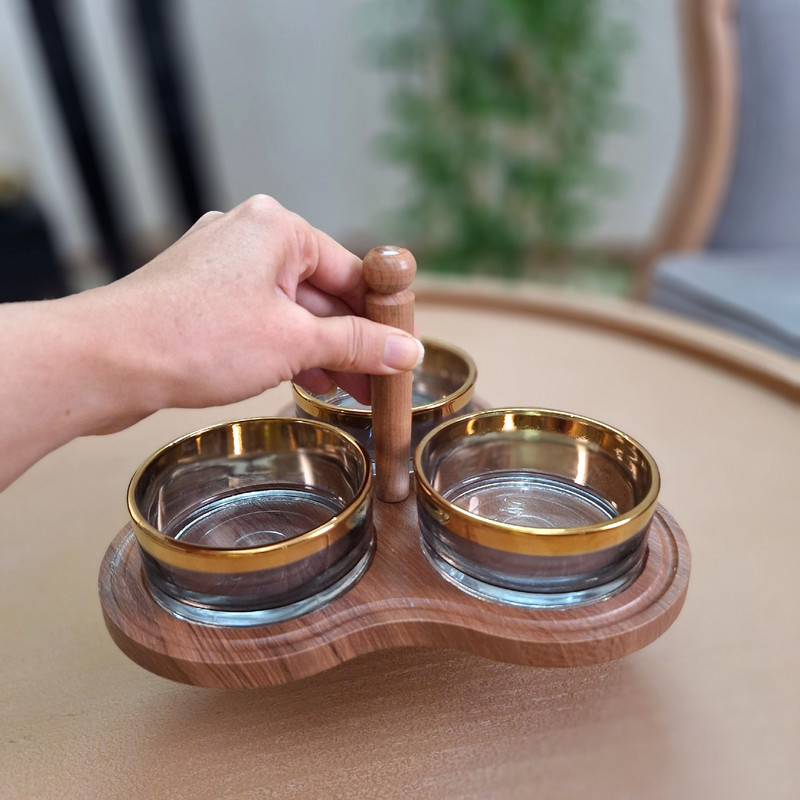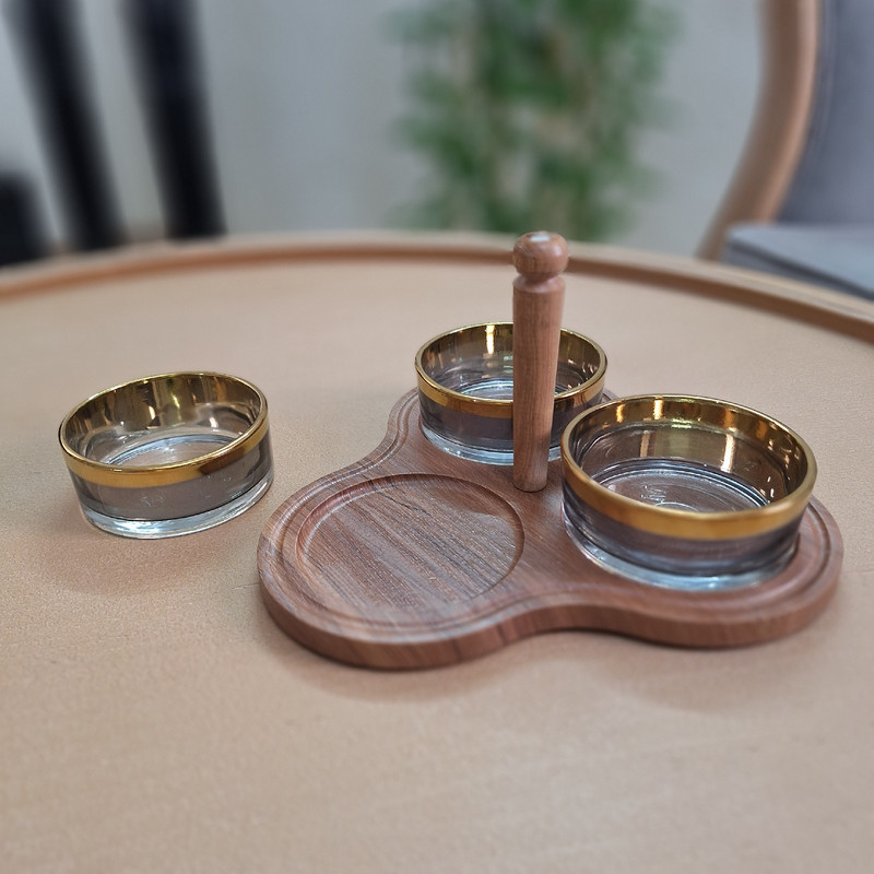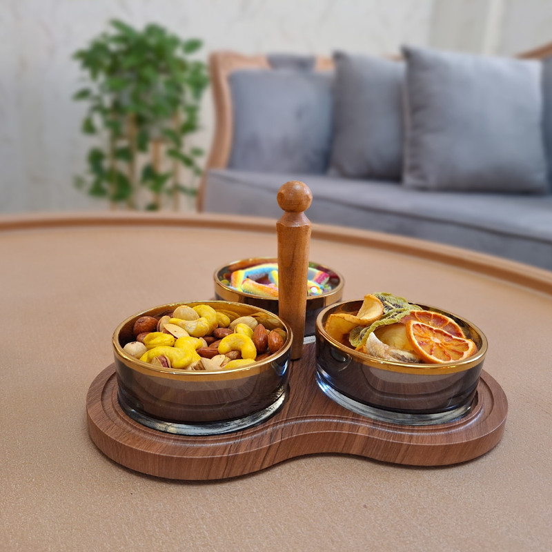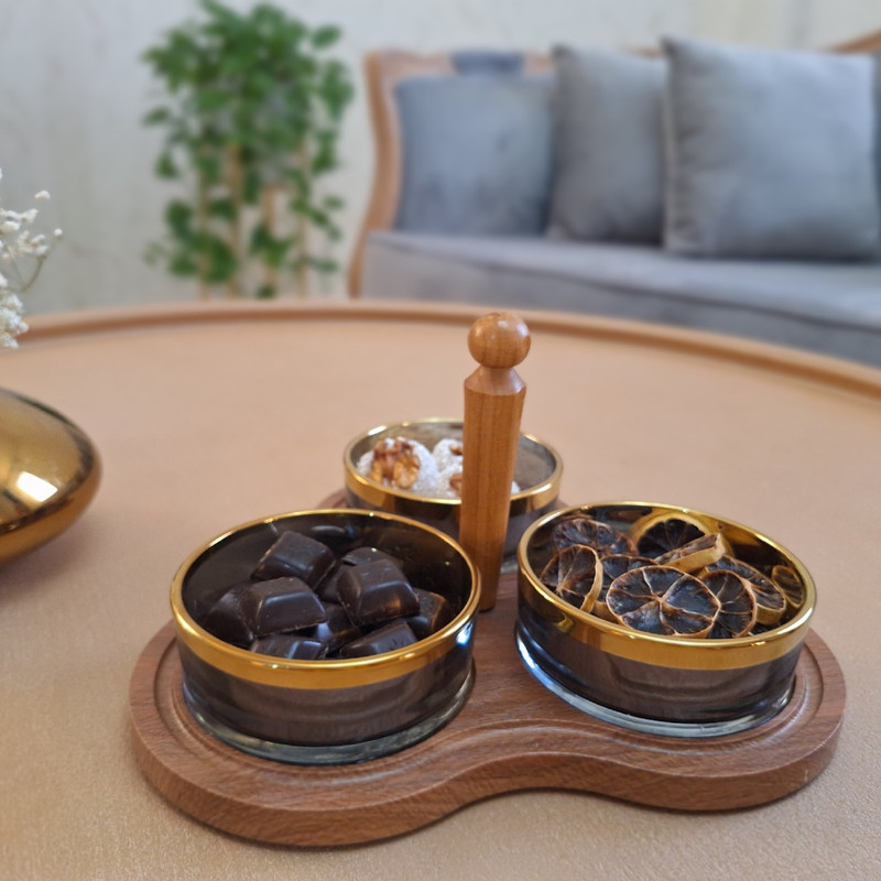 این محصول شامل سه عدد پیاله بلور با پوشش نانو و یک عدد زیره چوبی روکش وکیوم مقاوم در برابر خط و خش همراه یک عدد دسته چوبی که به وسط بیس کار پیچ میشود و این امکان را به شما میدهد تا به دو صورت دسته دار و بدون دسته مورد استفاده قرار گیرد مجزا بودن پیاله ها جهت شستشوی راحت,کیفیت بالا و طراحی مدرن انتخابی عالی برای هرمکانی از جمله منزل ,محل کار ,کافی شاپ و جمع های دوستانه شما میباشد ظاهر زیبا و لوکس با ترکیب طلایی و دودی جلوه ای خاص به میز پذیرایی می دهد که برای سرو تنقلات خوراکی ها و.. بویژه برای مصرف روزانه ,مهمانی ها و دور همی ها میباشد