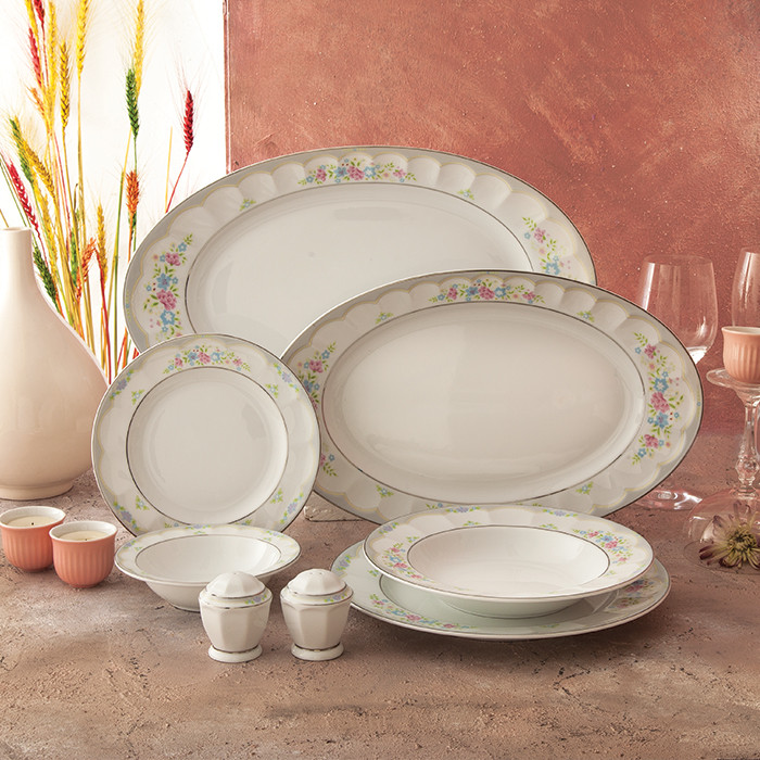 اقلام سرویس: ظرف سالاد , سالادخوری , دیس , بشقاب غذاخوری , بشقاب خورشخوری , پیشدستی , نمکپاش و فلفلپاش