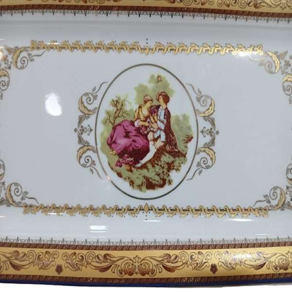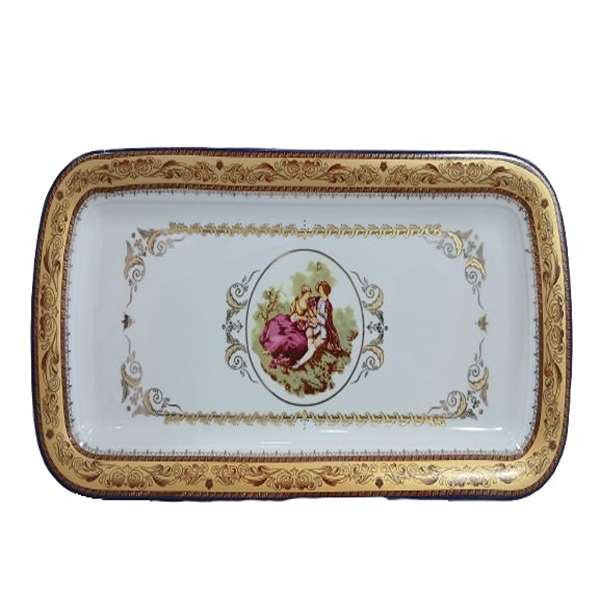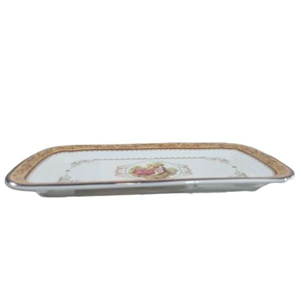 رولت خوری و شیرینی خوری طرح لیلی و مجنون طلایی چینی پردیس مناسب برای انواع سرو شیرینی و رولت و همجنین برای سفره نیز کارآیی بیشماری از جمله سرو خورشت و انواع خوراکی های مناسب سفره شما عزیزان خواهد بود. ابعاد دقیق این کالا عبارت است از : طول 35 سانتی متر و عرض 17 سانتی متر و 2 سانتی متر می باشد.