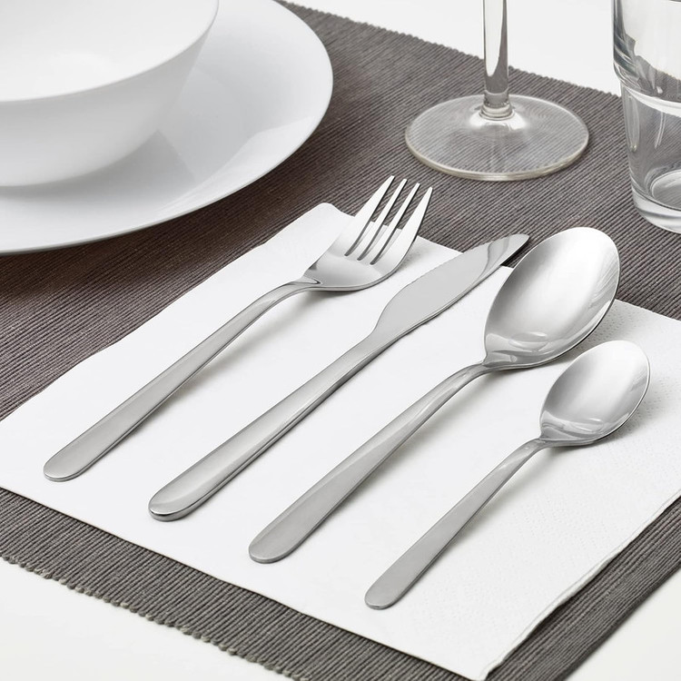 ۱۶ قطعه — شامل ۴ عدد قاشق غذاخوری، ۴ عدد چنگال، ۴ عدد چاقو و ۴ عدد قاشق چایخوری