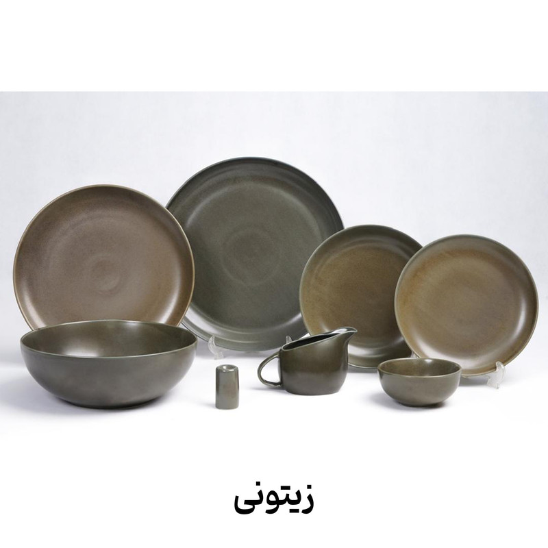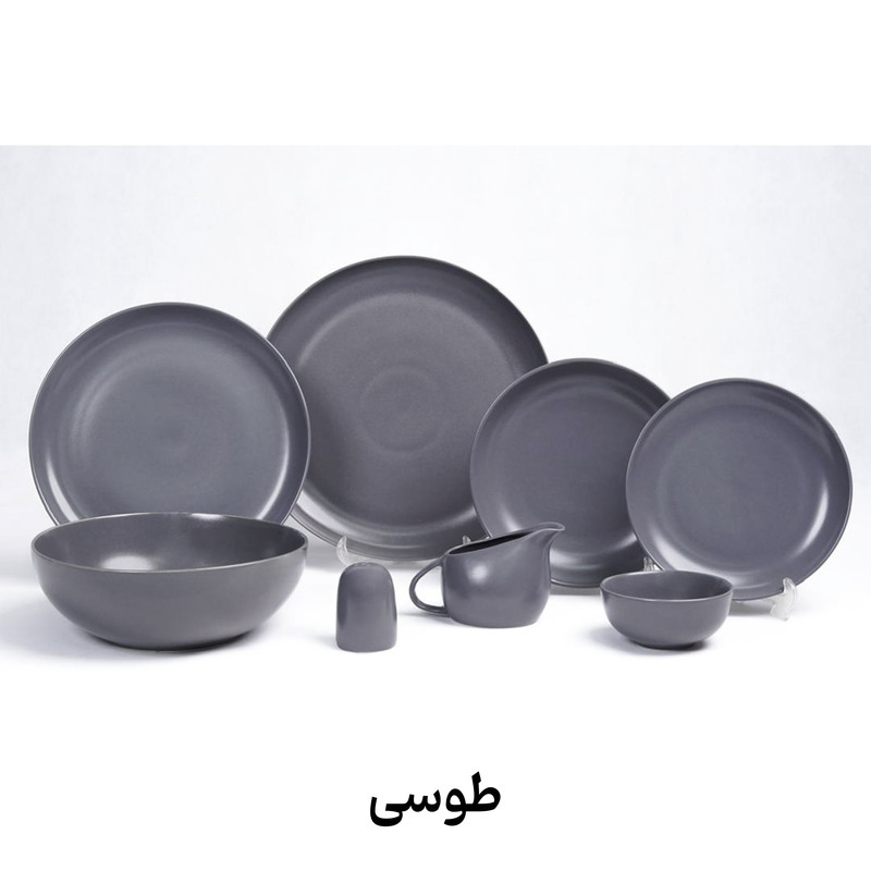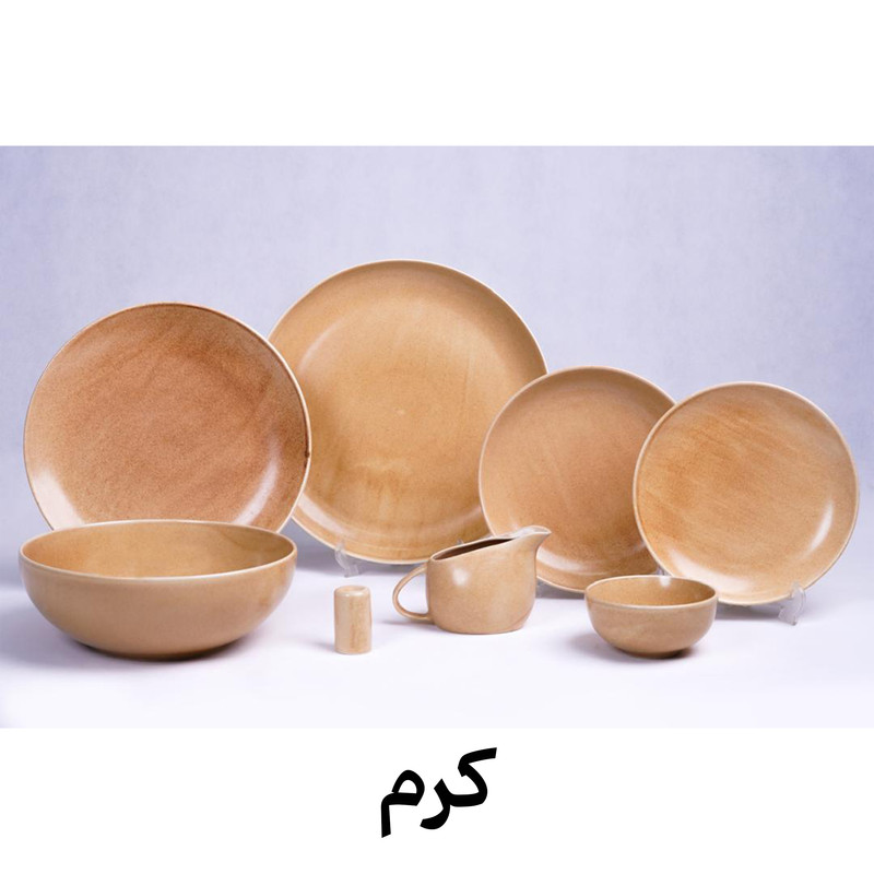 اقلام سرویس: بشقاب غذاخوری , بشقاب خورشخوری , دیس , پیشدستی , کاسه , پیاله , نمکپاش و فلفلپاش , ظرف سس