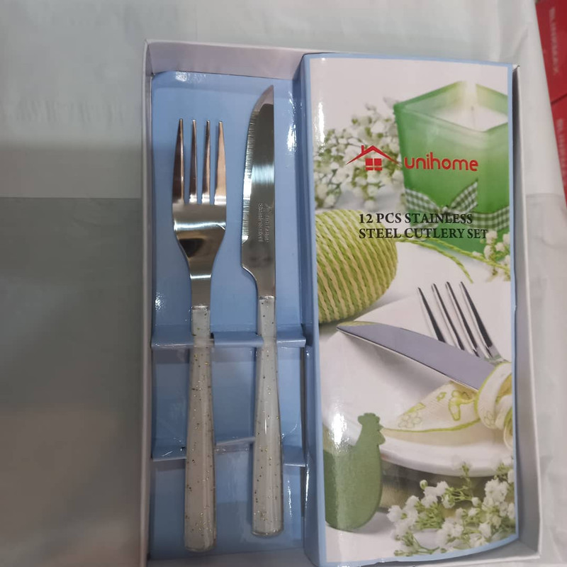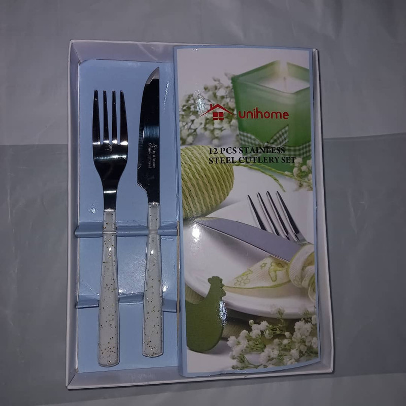 کارد و چنگال یونی هوم دارای تیغه بسیار تیز و یکسره می باشد و نیز دسته ها از پلاستیک فشرده و مقاوم در برابر ضربه و شکستگی ساخته شده اند. این کارد و چنگال علاوه بر زیبایی و به روز بودن با تیغه های بسیار تیزی که دارد مناسب محافل و مهمانی ها خواهد بود.