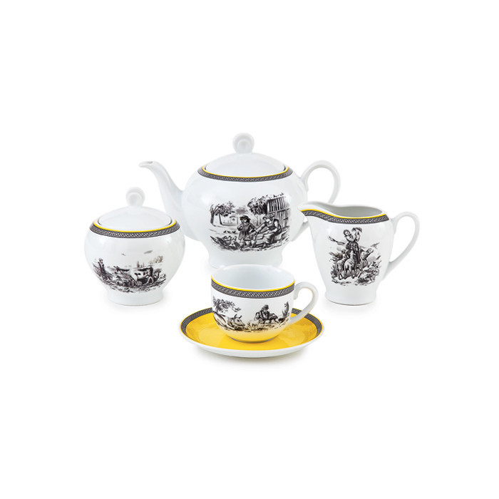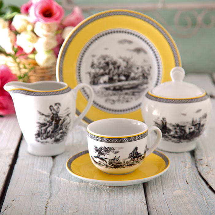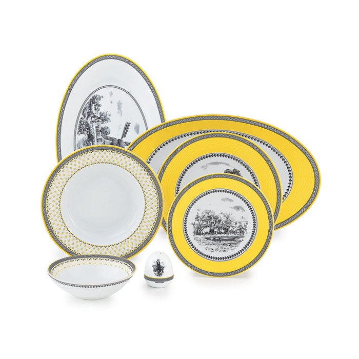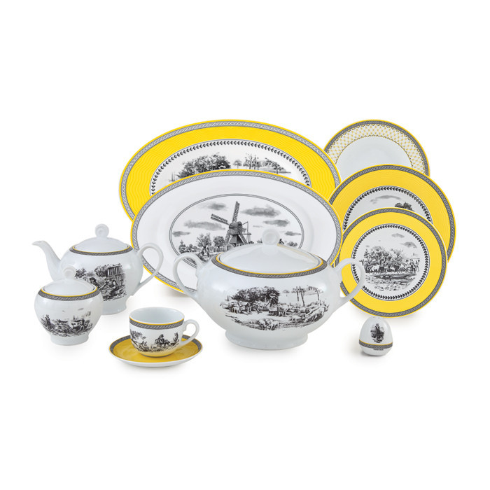 اقلام سرویس: سوپخوری , سالادخوری , دیس , بشقاب غذاخوری , بشقاب خورشخوری , پیشدستی , قوری چایخوری , فنجان , نعلبکی , قندان , شکرریز , نمکپاش و فلفلپاش , پیاله