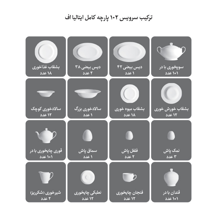 تعداد کلی ظروف: 102 پارچه
