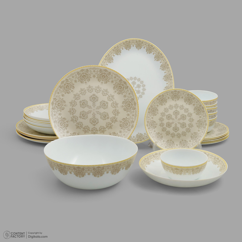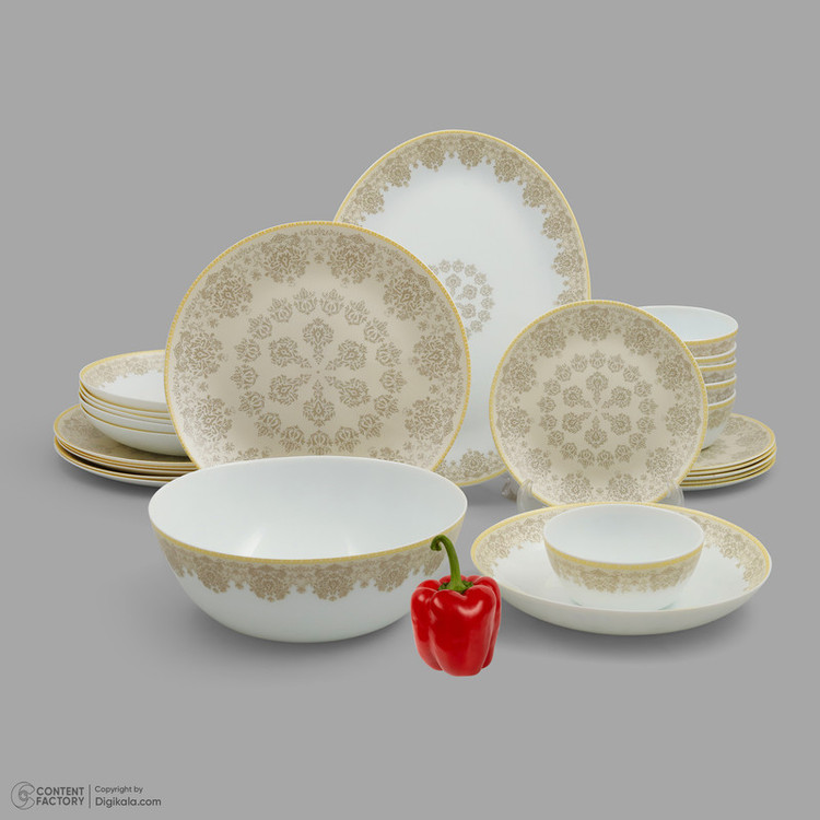 اقلام سرویس: دیس , بشقاب خورشخوری , بشقاب غذاخوری , ظرف سالاد , پیشدستی , پیاله