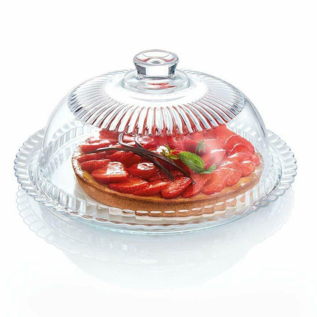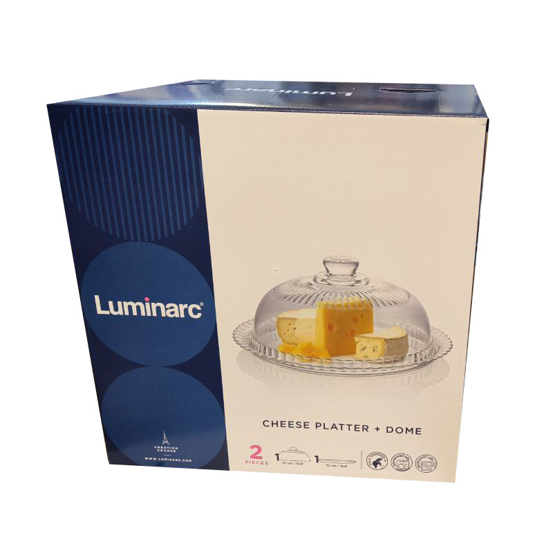 ظرف کیک خوری لومینارک از دسته ظروف پذیرایی چند منظوره محسوب می شود.این ظرف شامل دو تکه مجزا است.قسمت زیرین که یک دیس تخت گرد است و برای انواع پذیرایی می توانید از آن استفاده نمایید.از غذاهای گرم سر سفره مثل دیس برنج تا استفاده هایی مثل شیرینی خوری و کیک خوری.قطر دیس با احتساب لبه ها 32 سانتی متر است.قسمت رویی محفظه ای گنبد مانند است که روی دیس قرار گرفته و هم نمای زیبایی به ظرف می دهد و هم برای جلوگیری از در معرض هوا بودن محتویات دیس کمک می کند.قطر قسمت رویی حدود 27 سانتی متر و ارتفاع آن حدود 15 سانتی متر است.این ظرف مناسب انواع پذیرایی های خوراکی های گرم و سرد است و قابلیت استفاده در ماکروفر را داراست.
