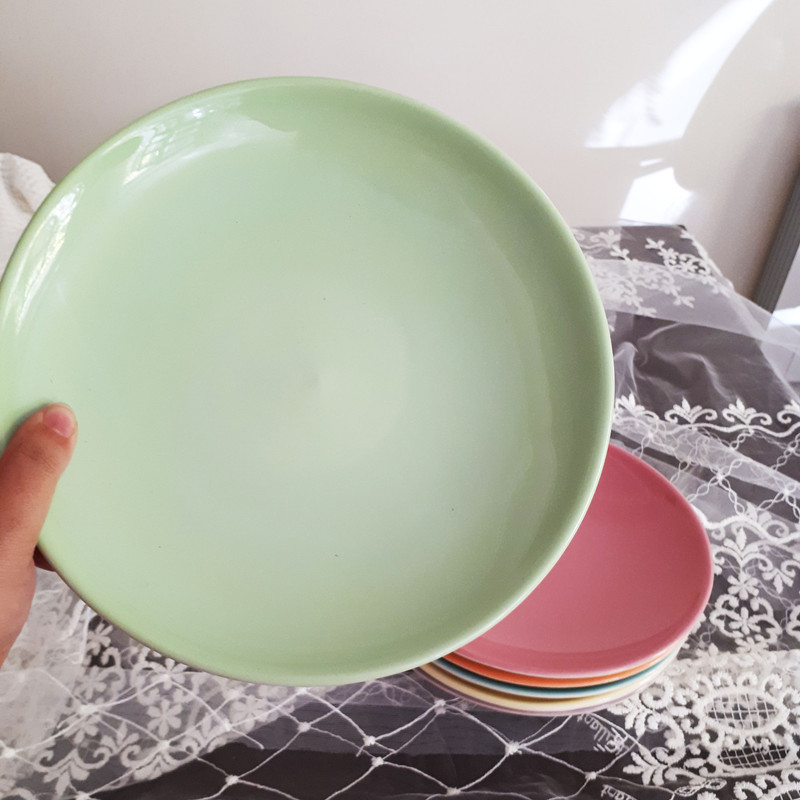 دستهبندی: بشقابوزن: 297 گرمسایر توضیحات: بشقاب میوه خوری گرد مدل رنگی از جنس سرامیک است و دارای شش رنگ زیبا در یک دست 6تایی می باشد.ابعاد: 18.5x8.5x3 سانتیمتر