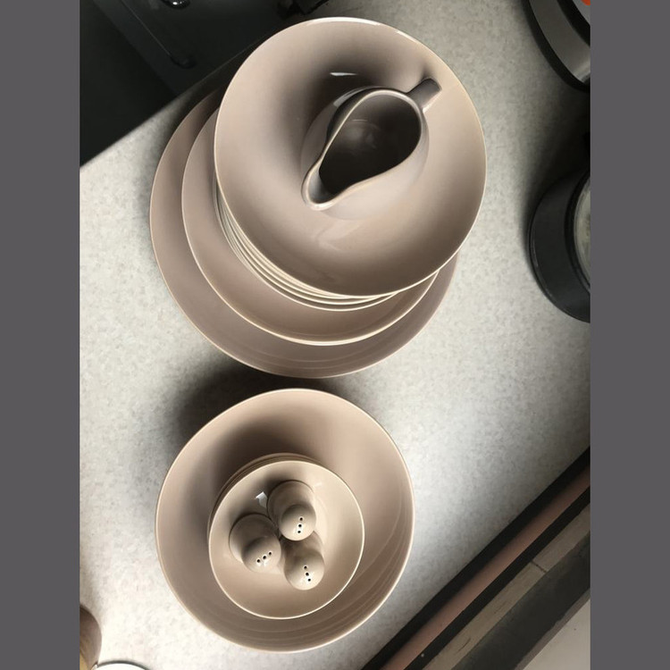 اقلام سرویس: کاسه , دیس , بشقاب غذاخوری , بشقاب خورشخوری , پیشدستی , شکرریز , نمکپاش و فلفلپاش , پیاله
