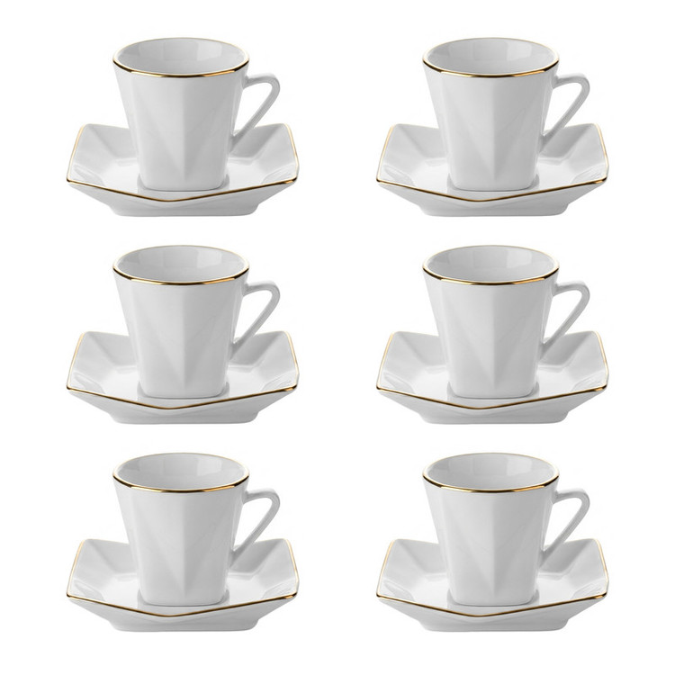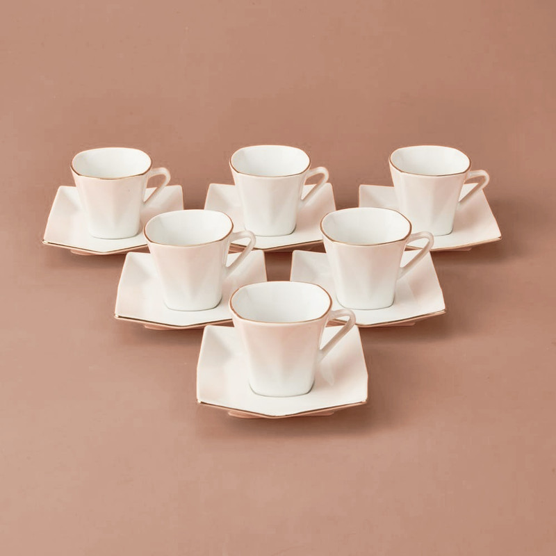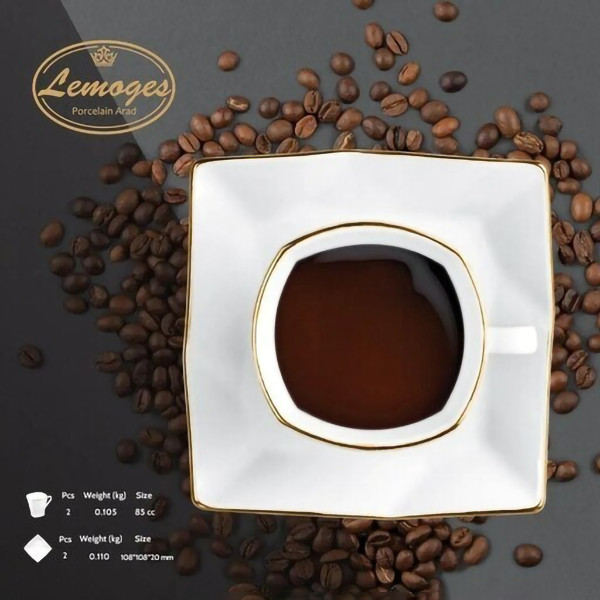 مناسب برای قهوه - قطر دهانه فنجان حدود 6 سانتی متر - ارتفاع فنجان حدود 5/7 سانتی متر - نعلبکی به صورت مربع شکل با اضلاع حدود 10 سانتی متر - گنجایش هر فنجان حدود 85 میلی لیتر - به خاطر لبه های طلایی و حفظ کیفیت آن بهتر است با دست شستشو شود