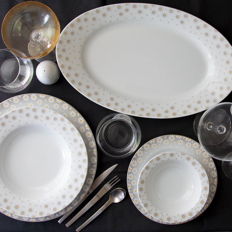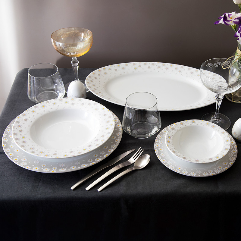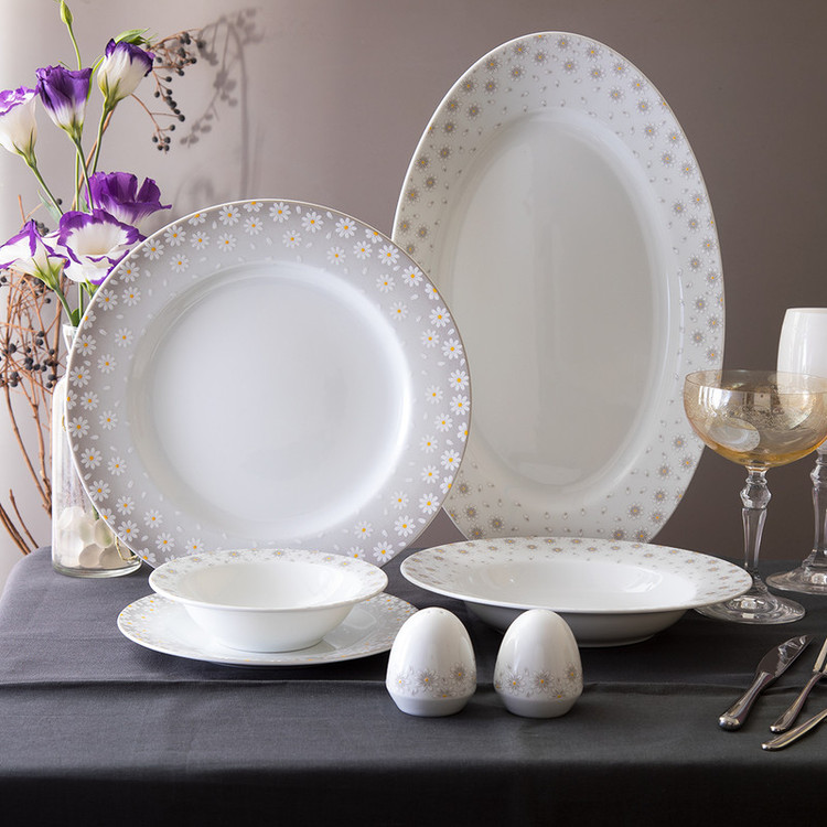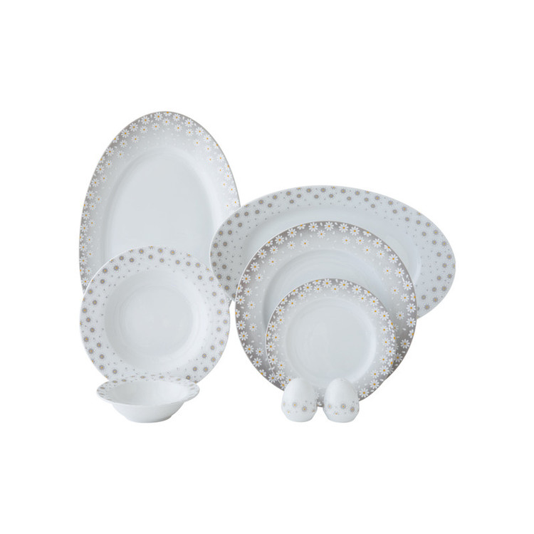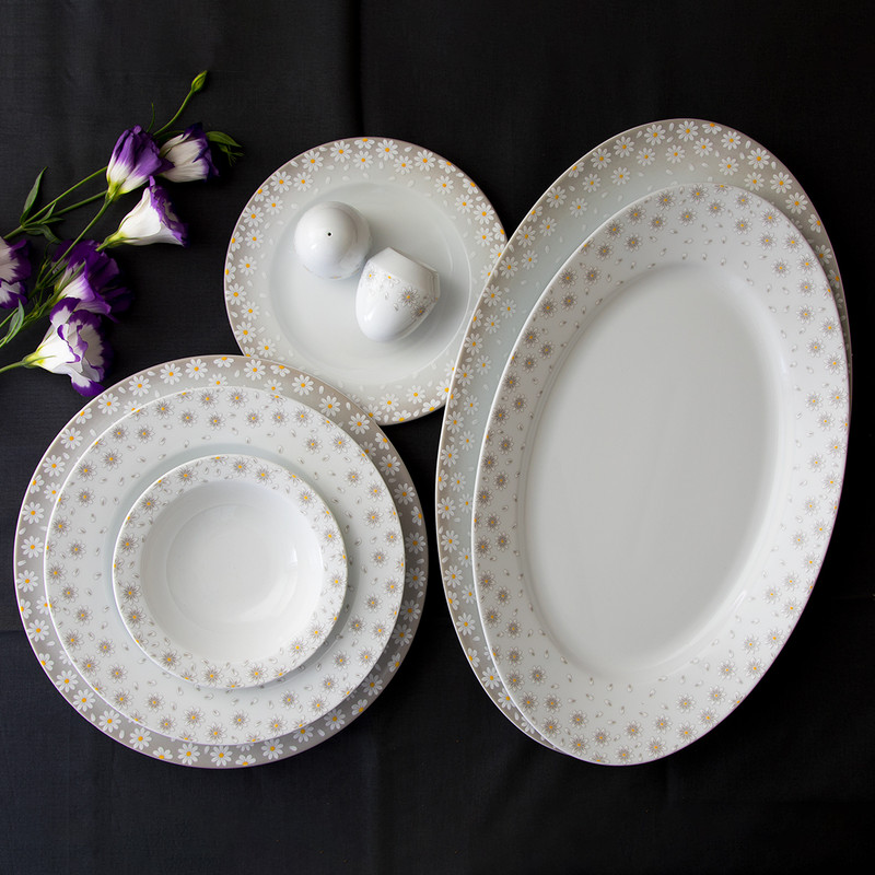 اقلام سرویس: سالادخوری , دیس , بشقاب غذاخوری , بشقاب خورشخوری , پیشدستی , نمکپاش و فلفلپاش