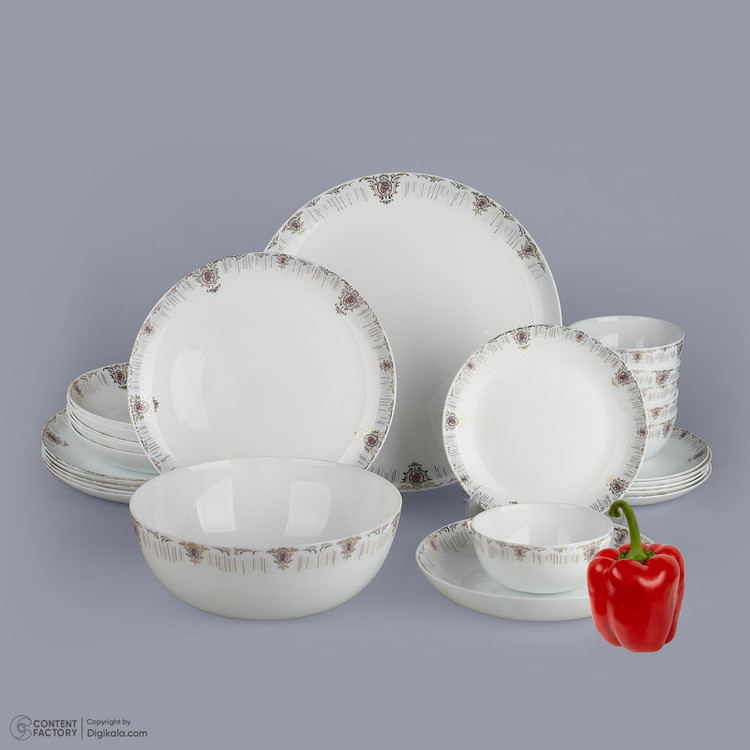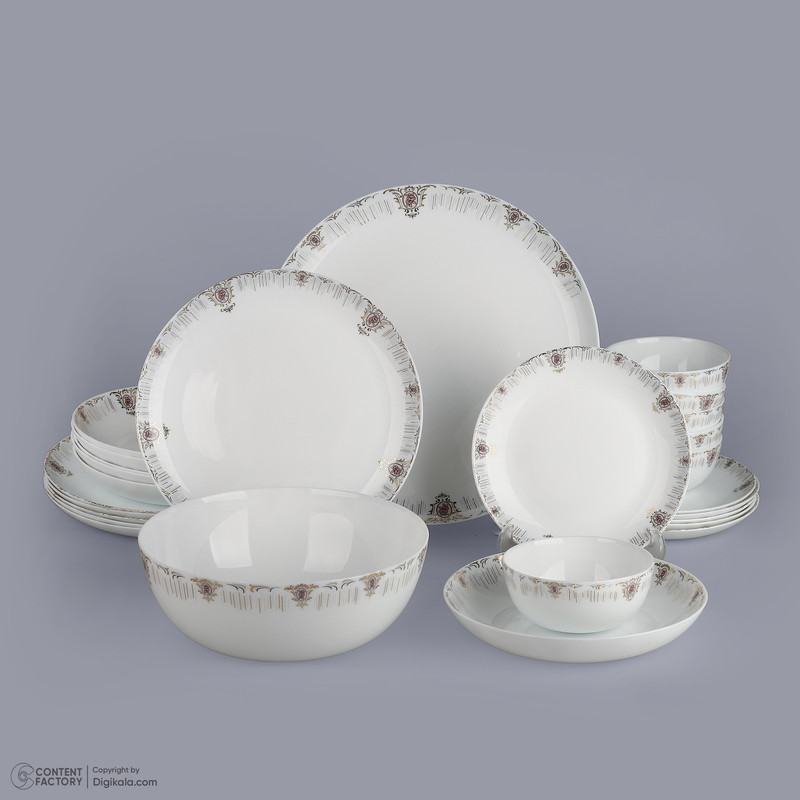 اقلام سرویس: ظرف سالاد , دیس , بشقاب غذاخوری , بشقاب خورشخوری , پیشدستی , پیاله