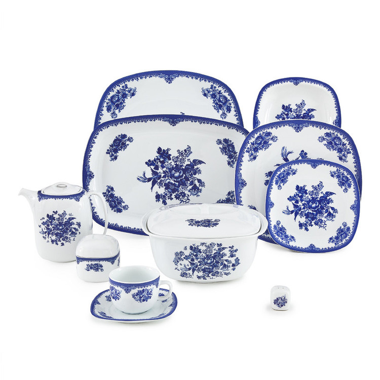 اقلام سرویس: سوپخوری , کاسه , ظرف سالاد , سالادخوری , دیس , بشقاب غذاخوری , بشقاب خورشخوری , پیشدستی , قوری چایخوری , فنجان , نعلبکی , قندان , شکرریز , نمکپاش و فلفلپاش , پیاله , ظرف سس