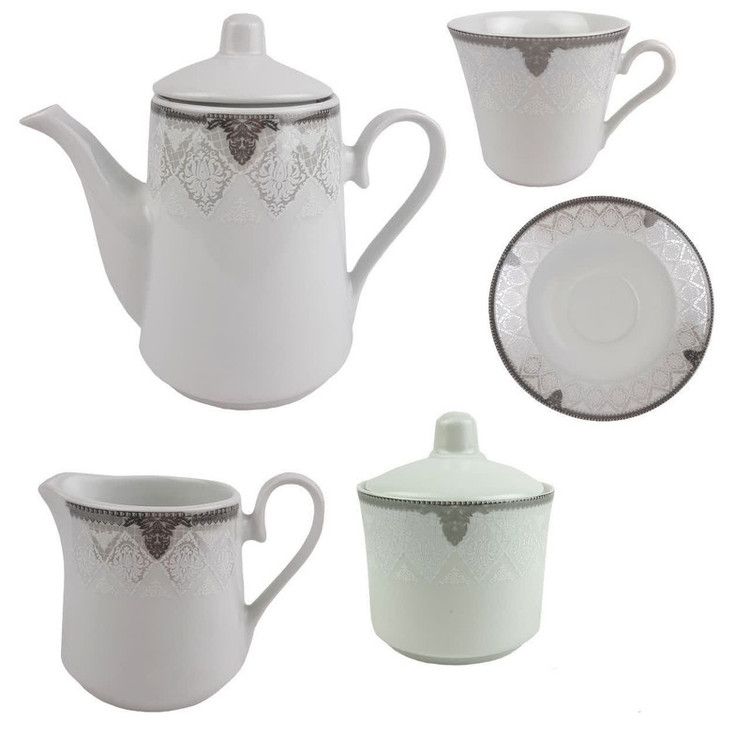 این سرویس 17 پارچه می باشد و شامل شش عدد فنجان و شش عدد نعلبکی و یک عدد قوری به همراه درب و یک عدد قندان به همراه درب و یک عدد شکر ریز می باشد.