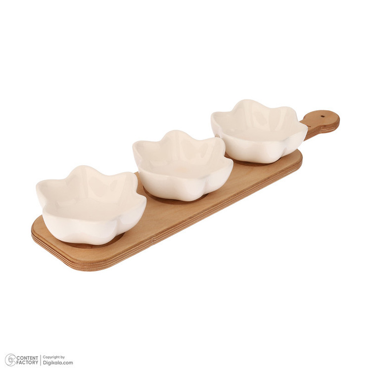 توضیحات ابعاد ظروف: نگهدارنده: 42.5x10.5x1.3 سانتیمتر - کاسه: 10.5x10.5x4 سانتیمتر