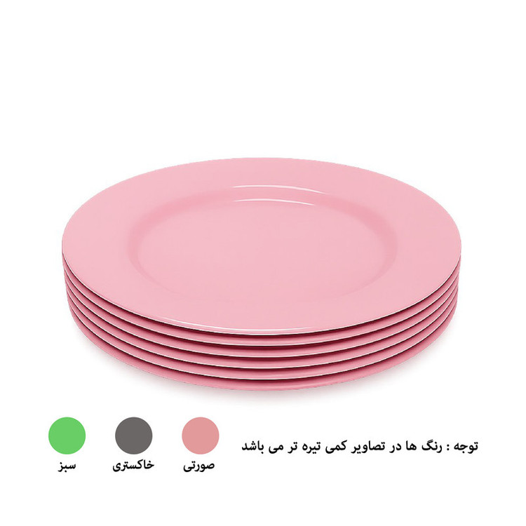 بشقاب غذاخوری ملامین مینای یزد مجموعه 6 عددی ، ابعاد : 22.5 در 22.5 در 1.5 سانتیمتر ، وزن هر عدد 190 گرم ، رنگ کالا نسبت به تصاویر روشن تر بوده و حدود 20 درصد اختلاف رنگ کالا با تصاویر به دلیل شرایط نوری بدیهی است.