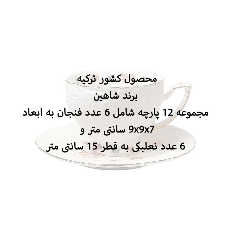 محصول کشور ترکیه - برند شاهین - مجموعه 12 پارچه شامل 6 عدد فنجان به ابعاد 9x9x7 سانتی متر و 6 عدد نعلبکی به قطر 15 سانتی متر