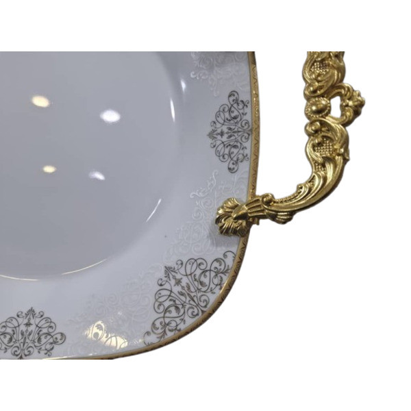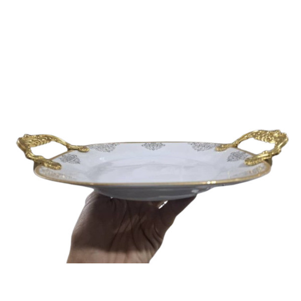 شیرینی خوری قالب مربع دسته دار چینی پردیس کاشان مدل نیوشا می باشد که کارآیی بیشماری در خانه شما خوبان از جمله برای پذیرایی در مراسمات میهمانی برای سرو انواع شیرینی و دسر و همچنین در سفره برای سرو انواع خورشت و ... کاربرد دارد. اندازه استاندارد و متوسط این محصول برای مصارف روزمره خانه نیز کارآیی دارد. ابعاد دقیق این محصول عبارت است از: طول دسته به دسته 34 سانتی متر می باشد و ابعاد خود بشقاب 26/5 سانتی متر می باشد. دسته ها به وسیله پیچ آلنی و چسب 234 از پشت بشقاب سفت شده اند طوری که به روز زمان شلی و لقی به هیچ عنوان نخواهد داشت. با تشکر از اعتماد شما - چینی کادوئی ایفل