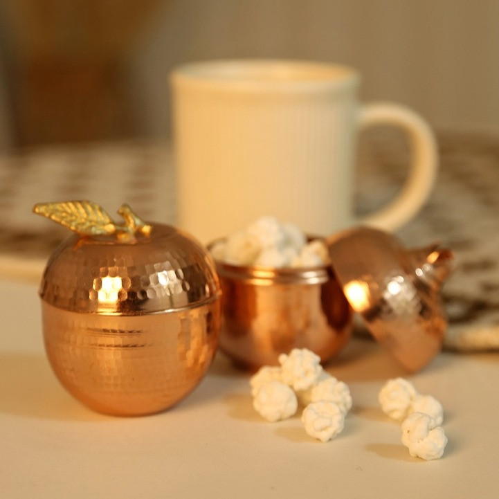 نقل خوری مسی طرح سیب اثری زیبا تولید شده توسط هنرمندان مسگر ایرانی است