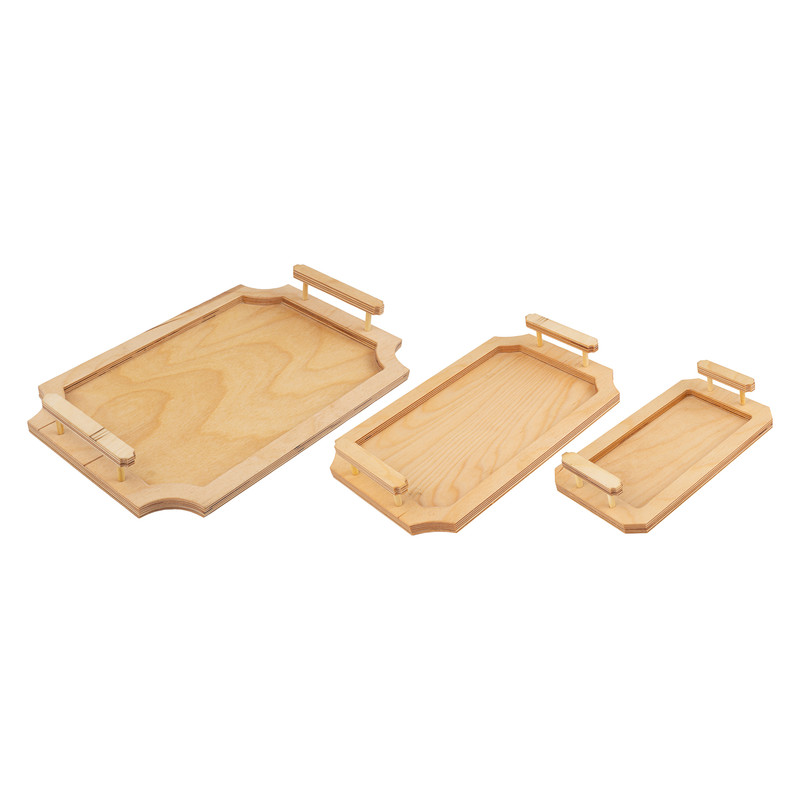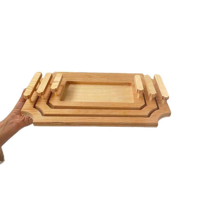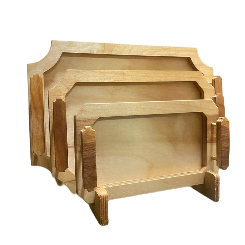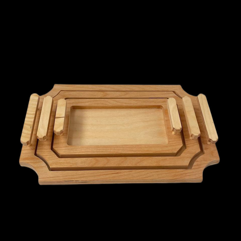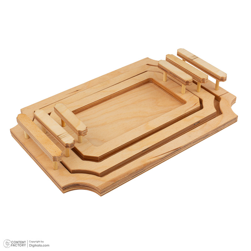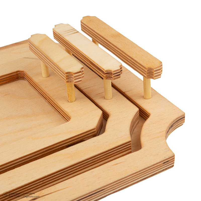 این محصول شامل سه سینی در سایزهای کوچک، متوسط و بزرگ است که به شما امکان استفاده متنوع در موقعیتهای مختلف را میدهد. جنس این سینیها از پلای وود درجه یک روسی است که علاوه بر دوام بالا، ظاهری طبیعی و جذاب دارد. رنگآمیزی این سینیها با رنگ گیاهی غیر سمی انجام شده است، که نه تنها ایمنی را تضمین میکند، بلکه زیبایی طبیعی چوب را نیز حفظ میکند.