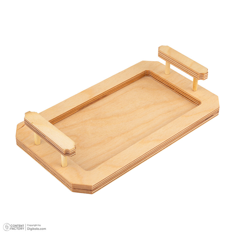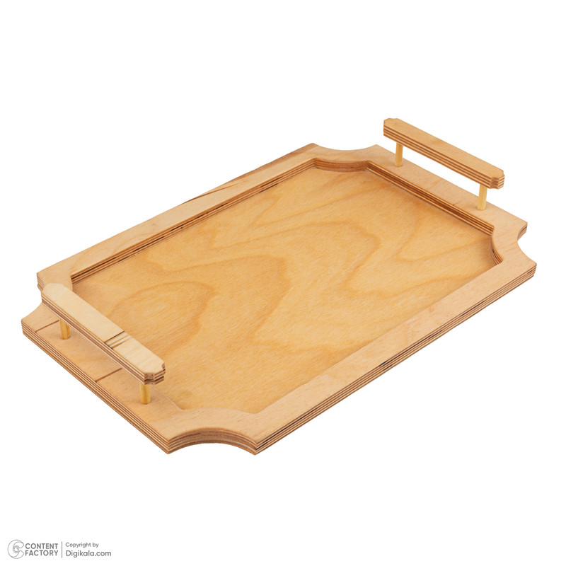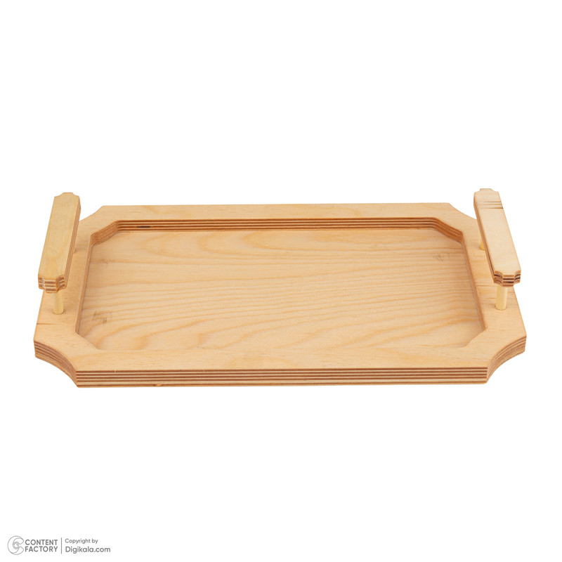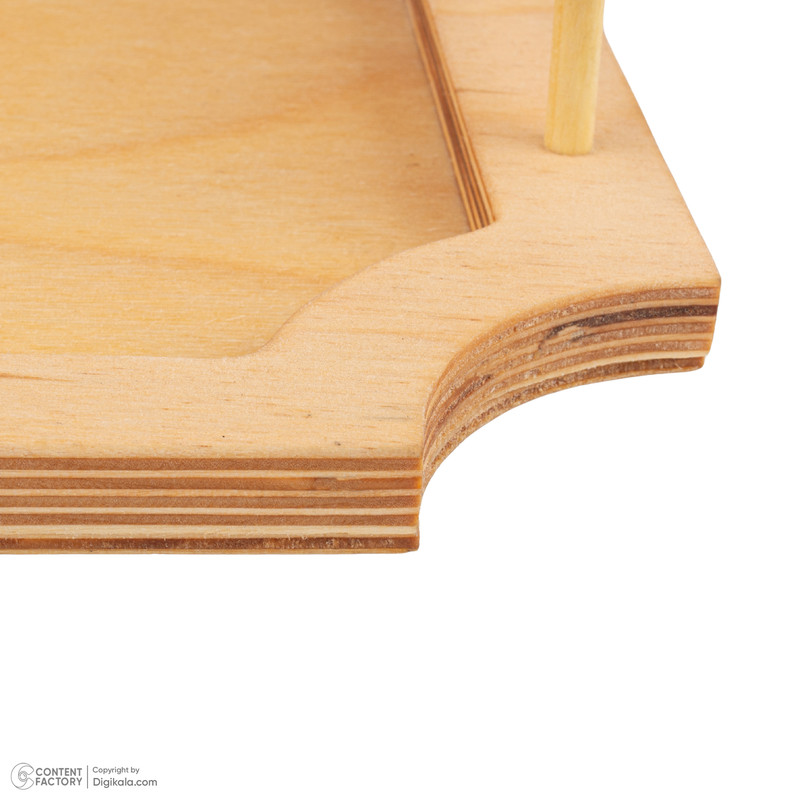 سینی چوبی مستطیل با رنگ طبیعی و طراحی خاص و شیک، مناسب برای استفاده در پذیرایی، دکوراسیون و حتی هدیه دادن است. این محصول با کیفیت ساخت بالا و طراحی ایرانی، انتخابی عالی برای کسانی است که به دنبال ترکیب زیبایی و کاربردی بودن در محصولات خانگی هستند.