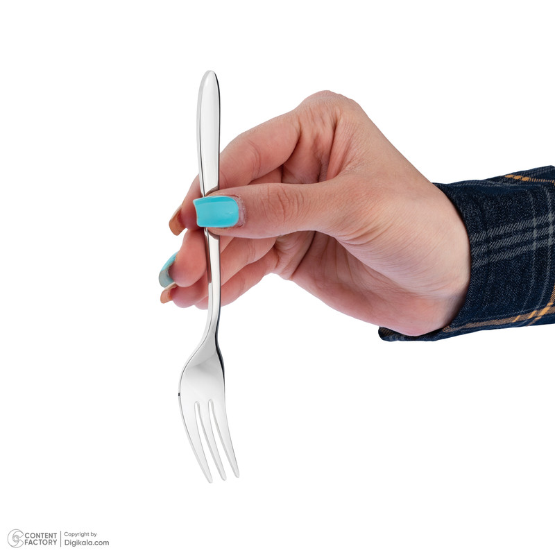 استیل 18/10 ضدزنگ با ضخامت 3/5 میلی متر - 6 عدد چنگال میوه خوری به ابعاد 13.5x2x0.35 سانتی متر و وزن 20 گرم